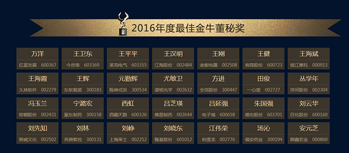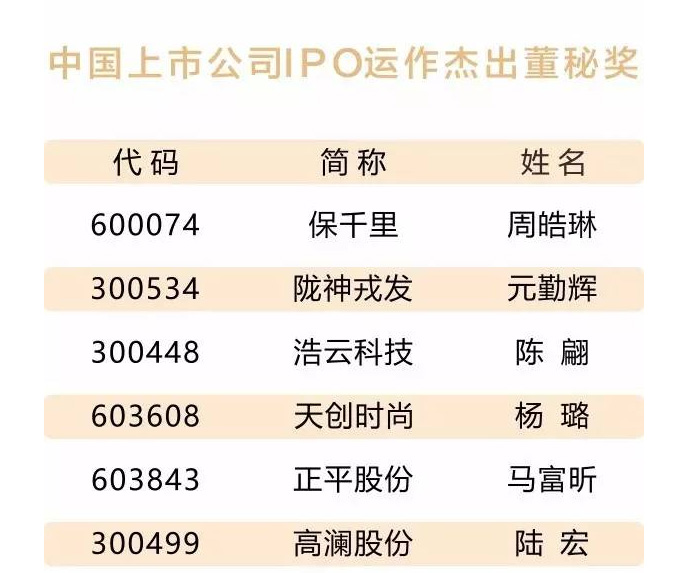 公司董事、副总经理、董事会秘书元勤辉荣获“中国创业板上市公司优秀董秘奖”、“中国上市公司IPO运作杰出董秘奖”和“第19届中国上市公司最佳金牛董秘奖”三项殊荣。