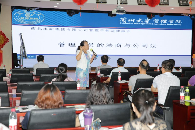 8月12-13日,西北永新集团“管理骨干综合能力提升研修班”第五期——《企业法律实务》培训在集团综合楼九楼多功能厅举行。兰州大学管理学院管理学博士、硕士生导师管欣教授为研修班学员开堂授课。