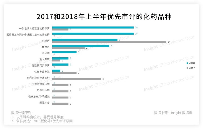 相比去年,今年在欧美同步申请、重大专项、罕见病、儿童用药、国外已上市同步申请国内上市的仿制药和一致性评价标准仿制药申请这 6 个优先审评类别上,获得优先审评审批资格的药品数更多。