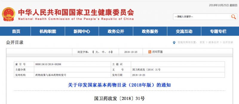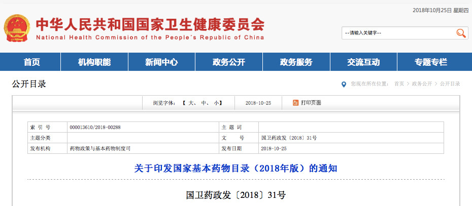 10月25日,国家卫健委还发布了《国家基本药物目录(2018年版)解读》,对于基药目录调入和调出的标准这个问题,给出了明确解释。