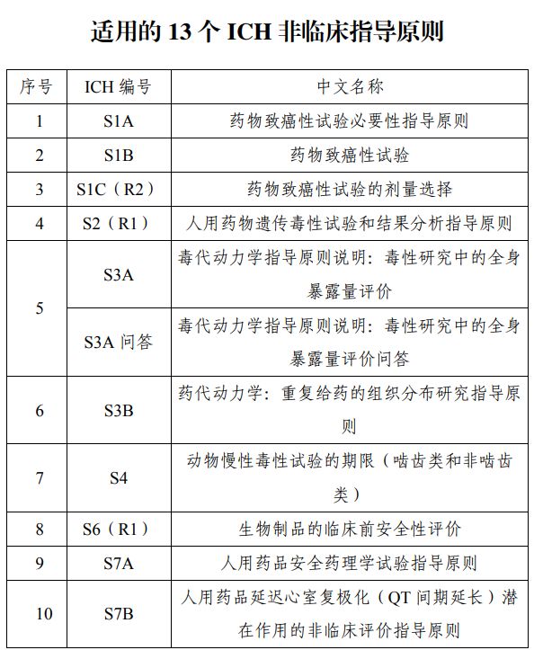国家药监局关于适用《S1A:药物致癌性试验必要性指导原则》等13个国际人用药品注册技术协调会指导原则的公告
