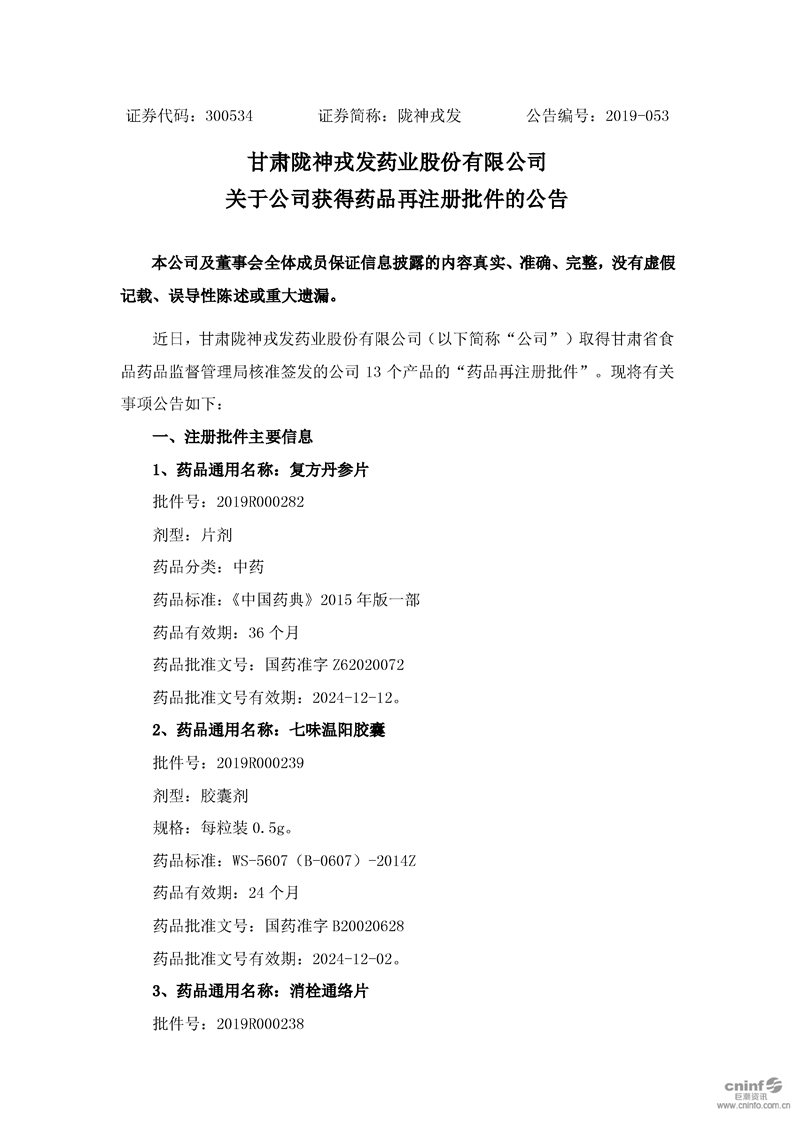 关于公司获得药品再注册批件的公告