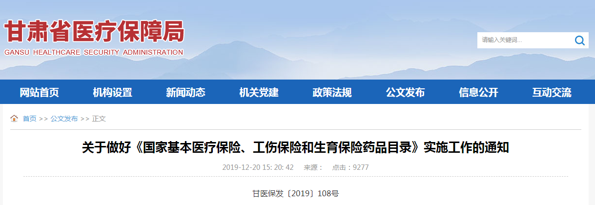 甘肃省医疗保障局关于做好《国家基本医疗保险、工伤保险和生育保险药品目录》实施工作的通知