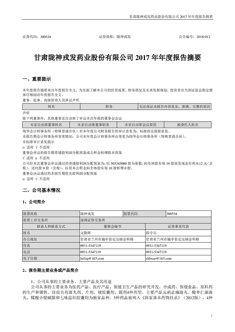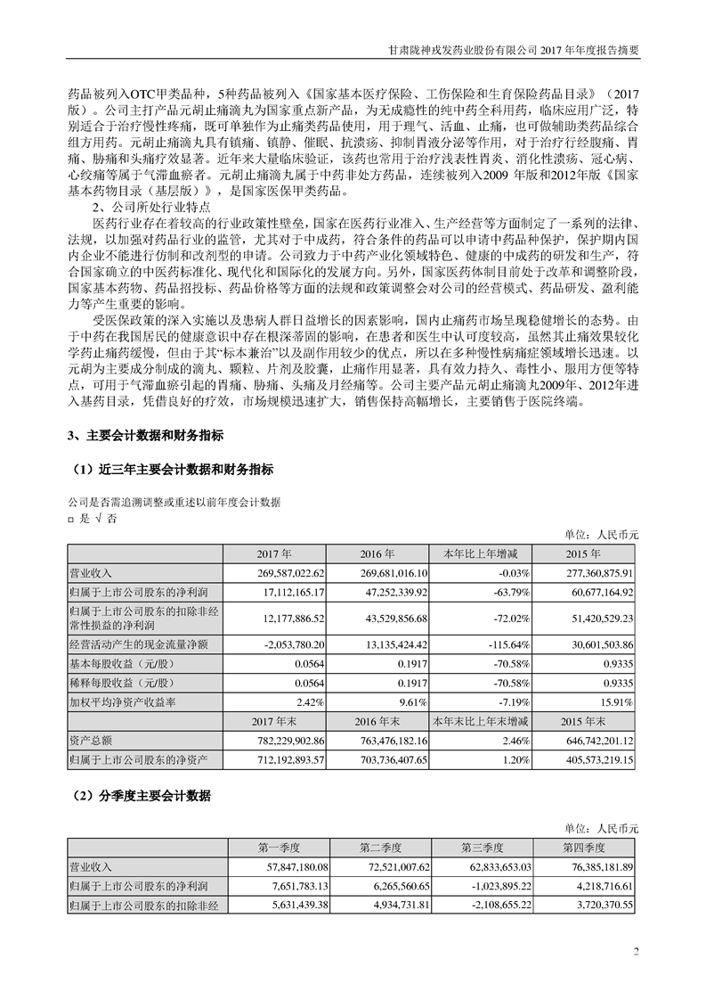 2017 年年度报告摘要