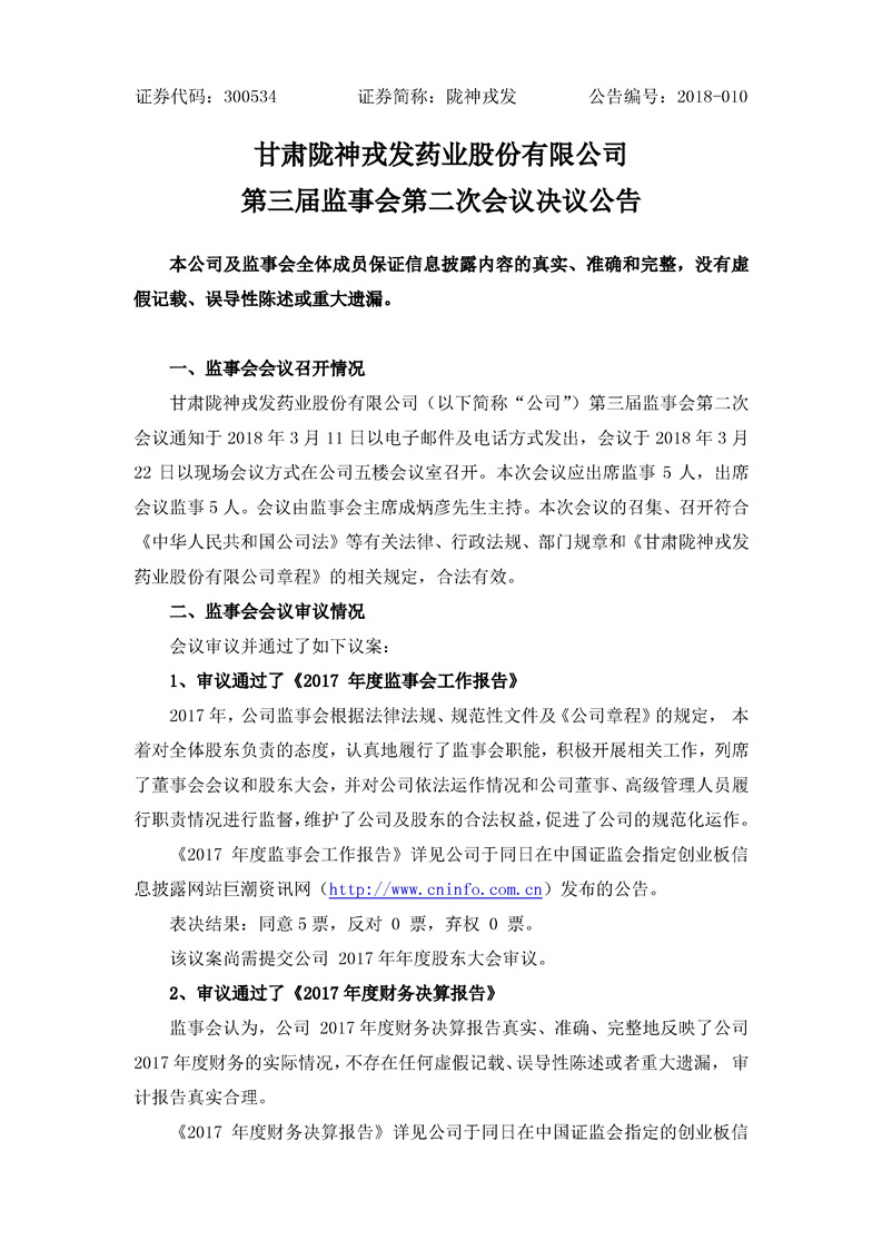 第三届监事会第二次会议决议公告