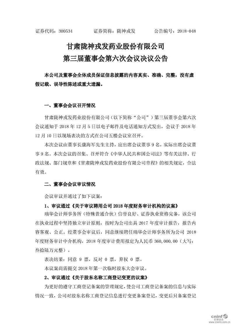 第三届董事会第六次会议决议公告