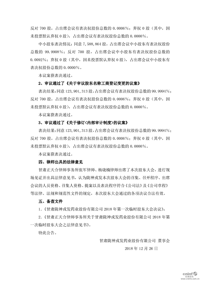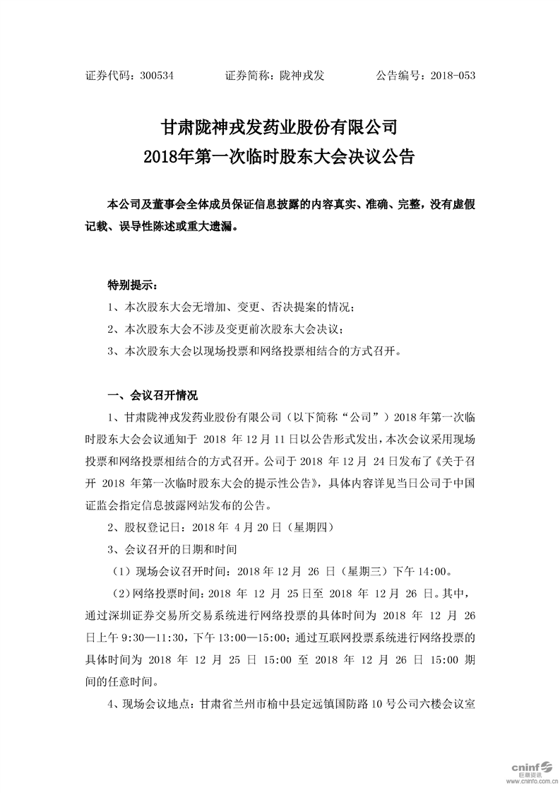 2018年第一次临时股东大会决议公告