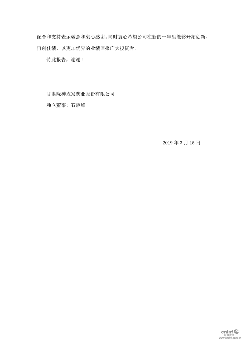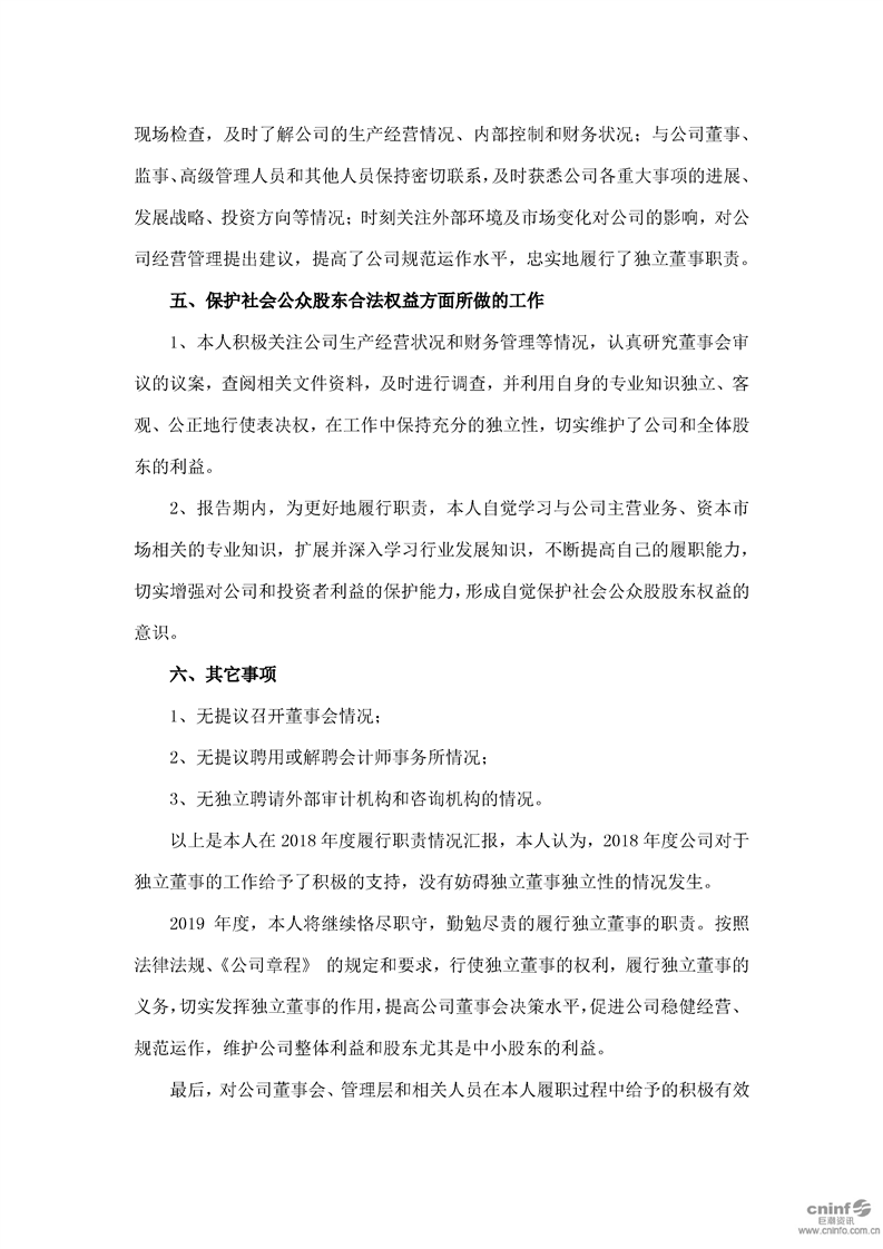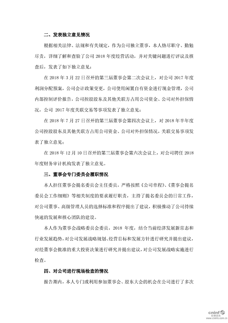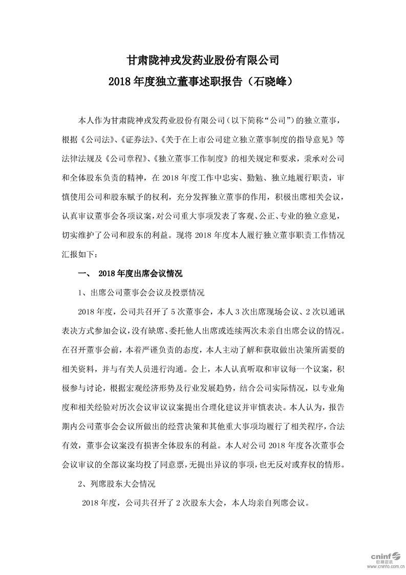 2018 年度独立董事述职报告(石晓峰)