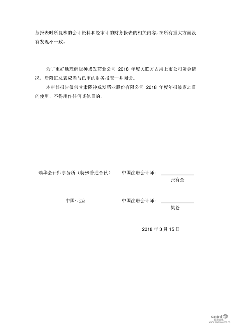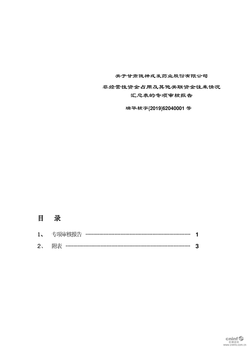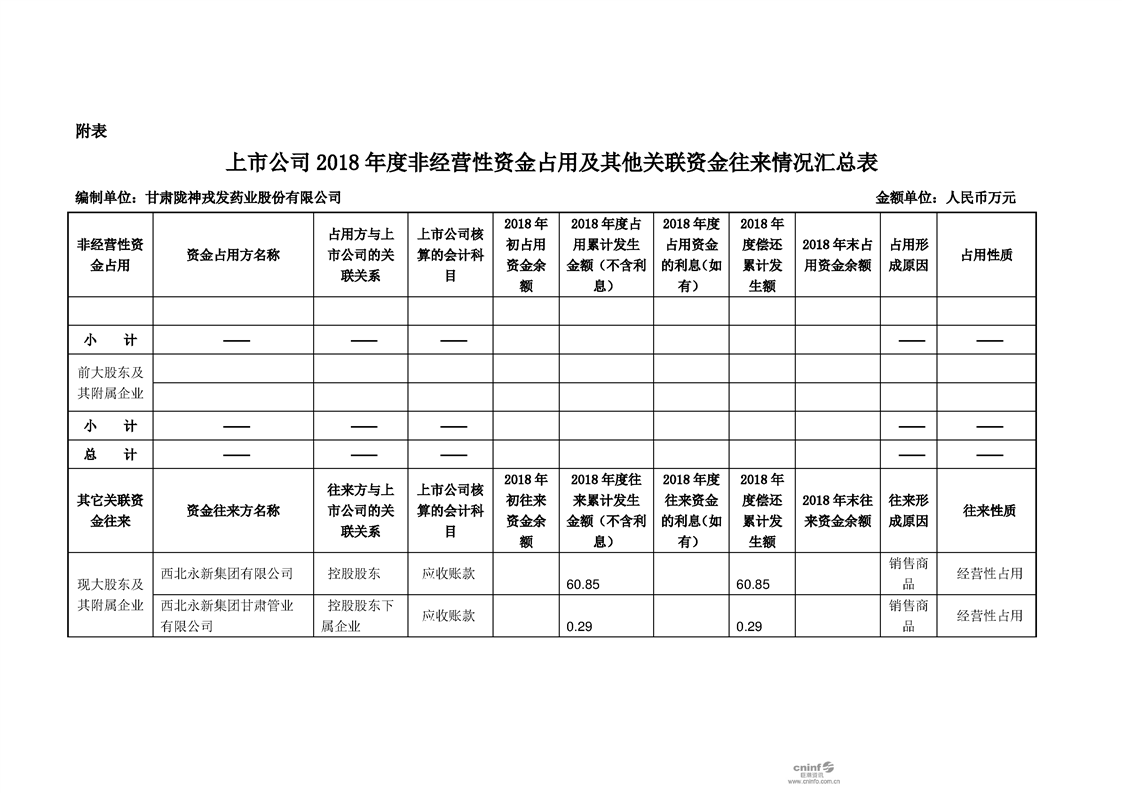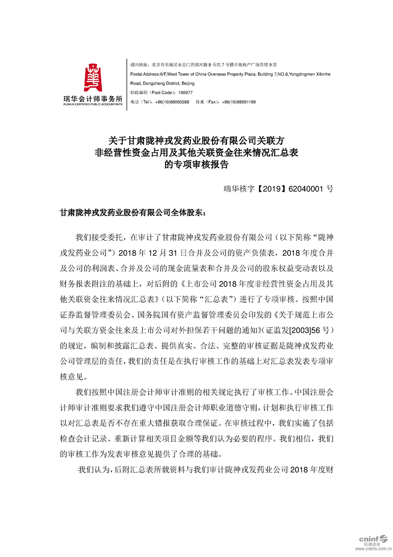 关于公司非经营性资金占用及其他关联资金往来情况汇总表的专项审核报告