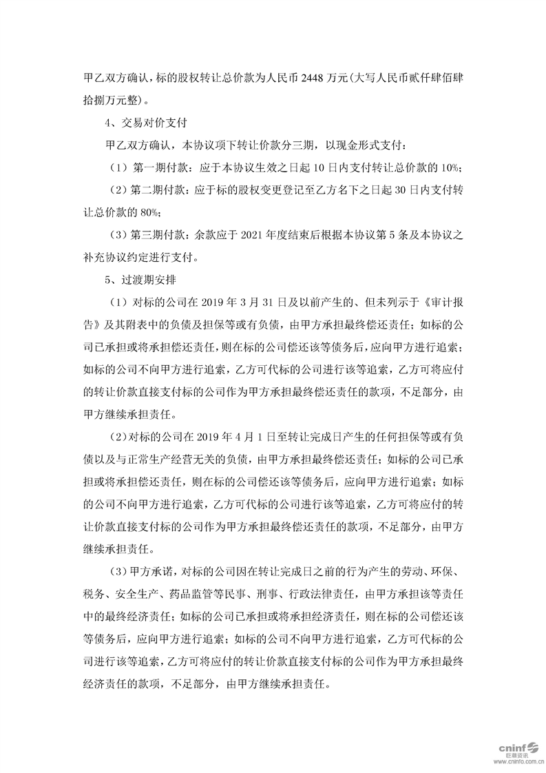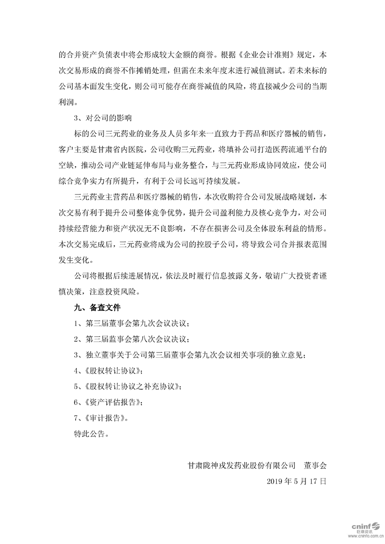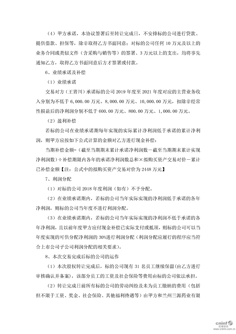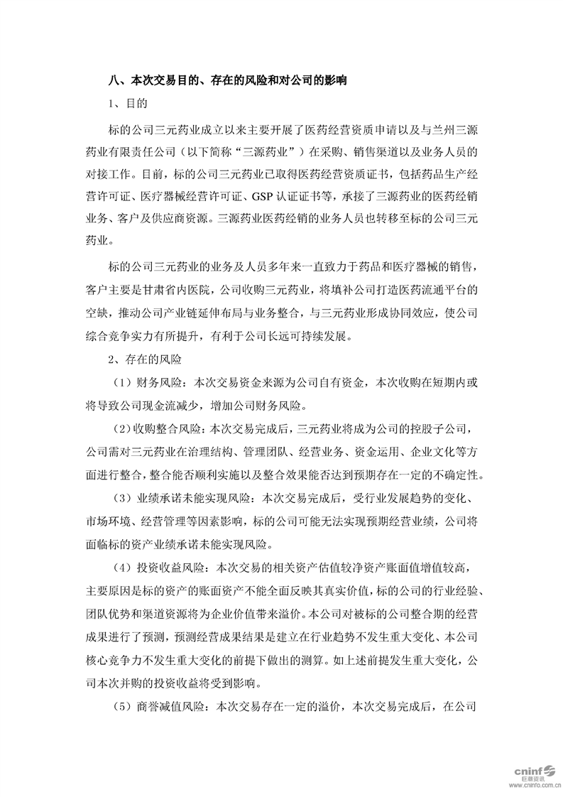 关于现金收购兰州三元药业有限责任公司51%股权的公告