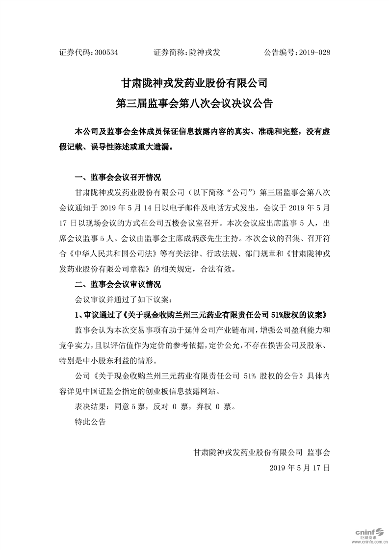 第三届监事会第八次会议决议公告