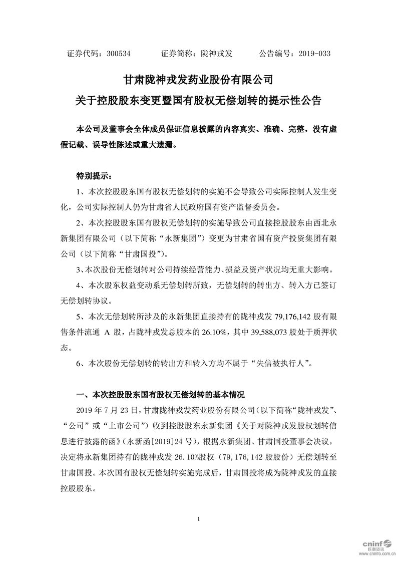 关于控股股东变更暨国有股权无偿划转的提示性公告