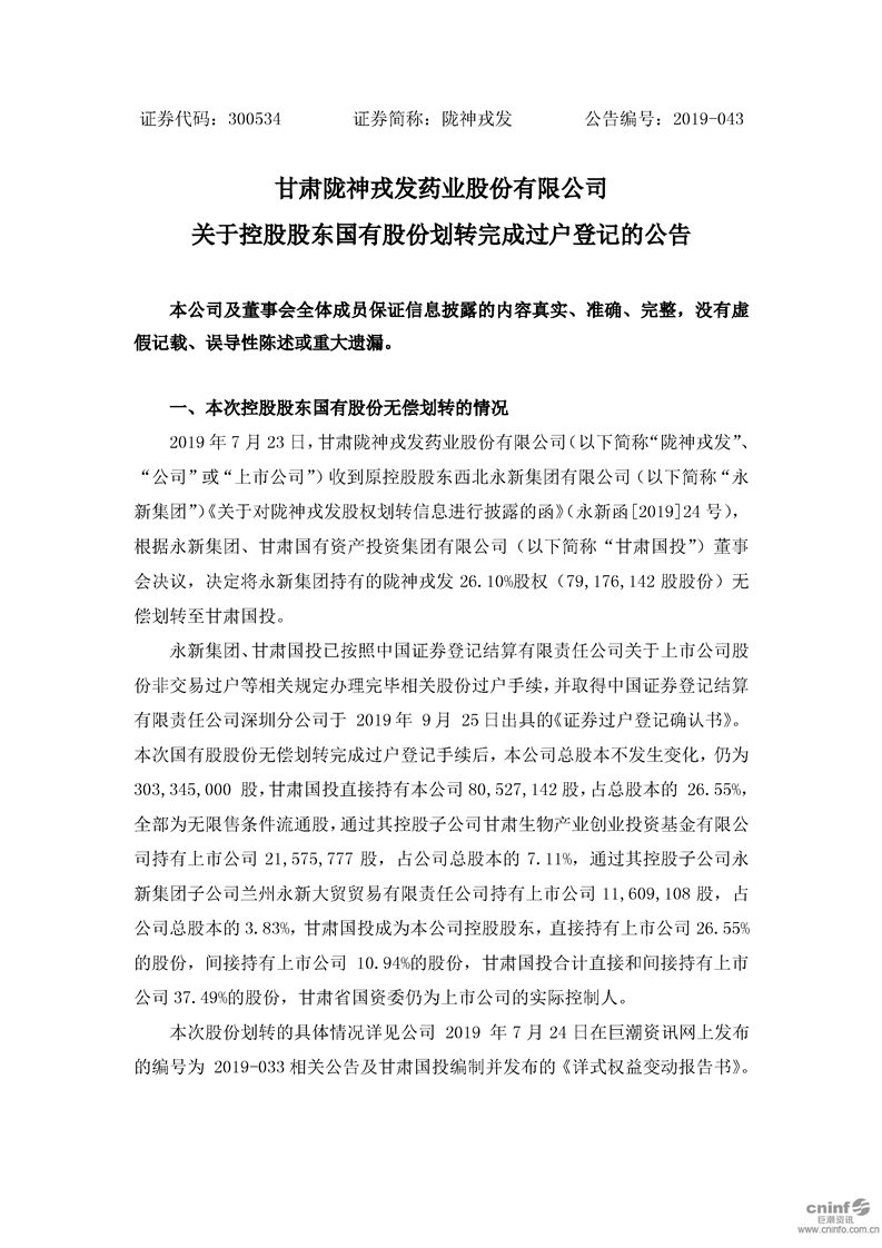 关于控股股东国有股份划转完成过户登记的公告