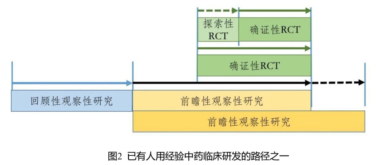 对于名老中医经验方、中药医疗机构制剂等已有人用经验药物的临床研发,在处方固定、生产工艺路线基本成型的基础上,可尝试将真实世界研究与随机临床试验相结合,探索临床研发的新路径。