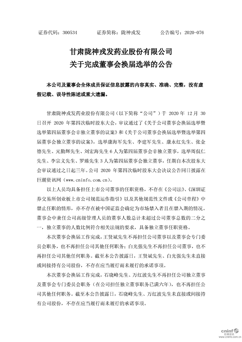 关于完成董事会换届选举的公告