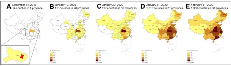 图2 新型冠状病毒肺炎从湖北向全国蔓延扩散