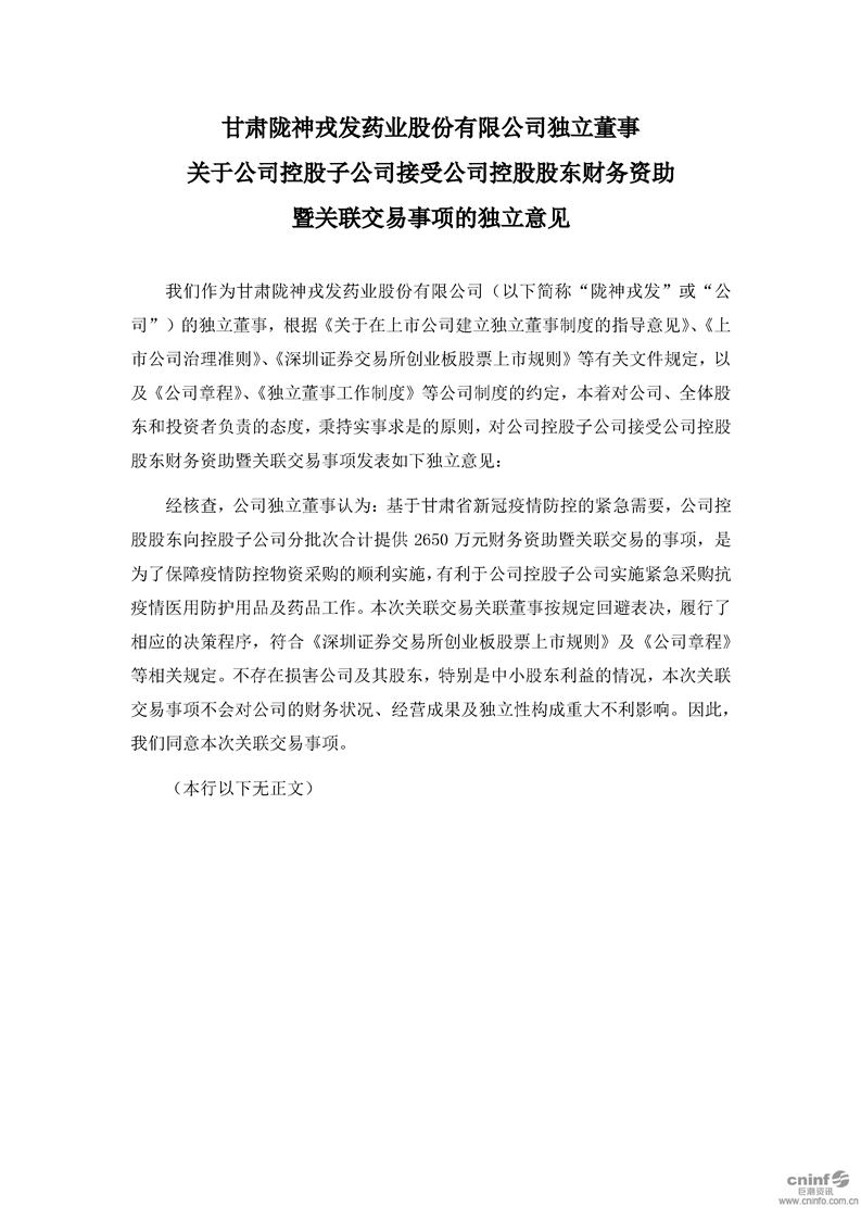 独立董事关于公司控股子公司接受公司控股股东财务资助暨关联交易事项的独立意见