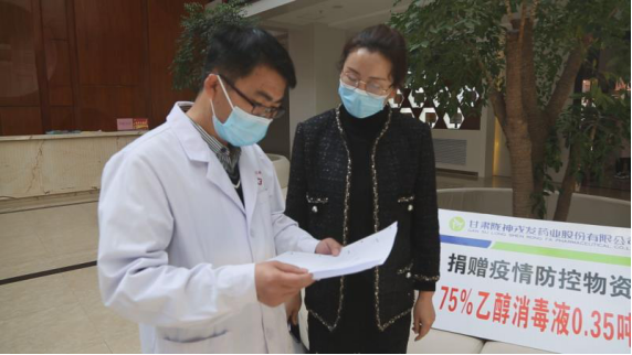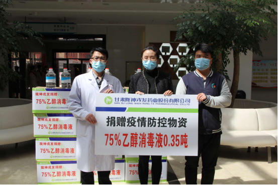 甘肃非凡娱乐药业股份有限公司向兰州出入境边防检查站、甘肃省听力语言康复中心捐赠75%乙醇消毒液