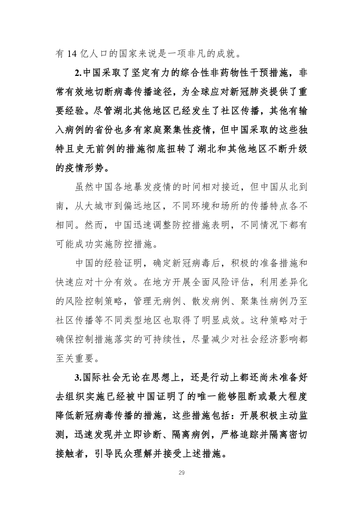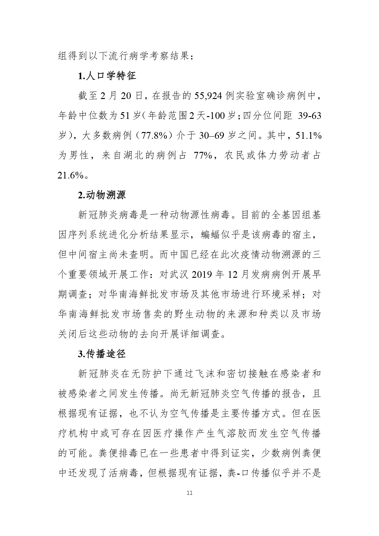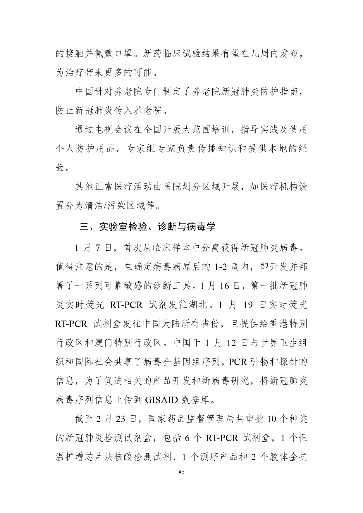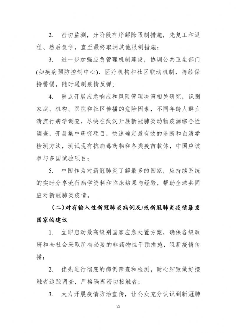 2月29日,国家疾病预防控制局发布《中国-世界卫生组织新型冠状病毒肺炎(COVID-19)联合考察报告》,对重视问题、主要发现、中国和全球应对措施及下一步工作进行了阐述,并且公布了部分实验室检验、诊断与病毒学、研发等方面详细的技术调查结果。