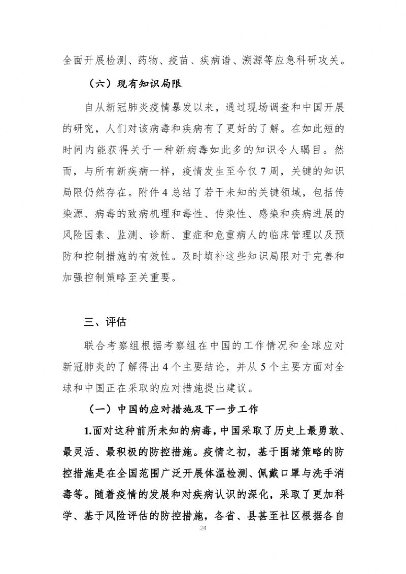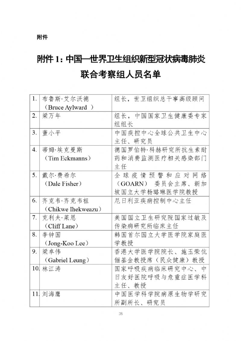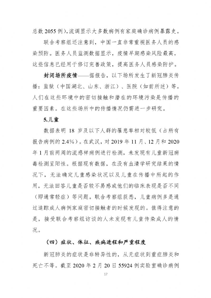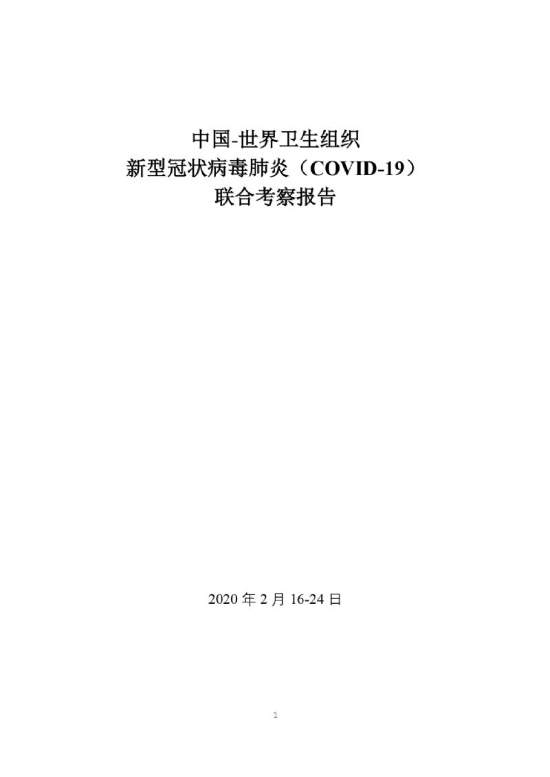 官方发布《中国-世界卫生组织新型冠状病毒肺炎(COVID-19)联合考察报告》