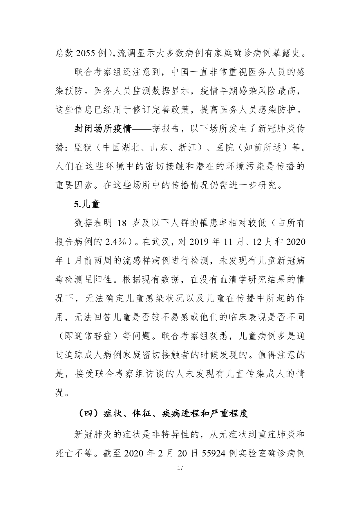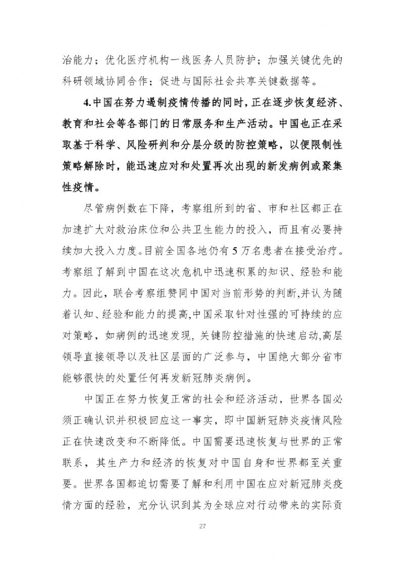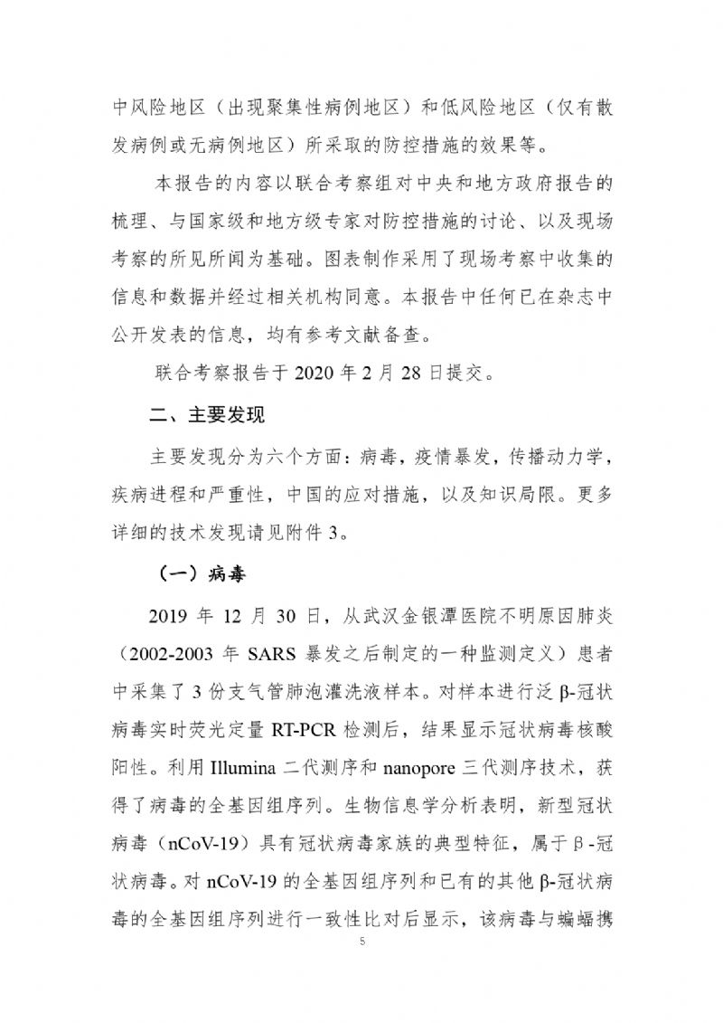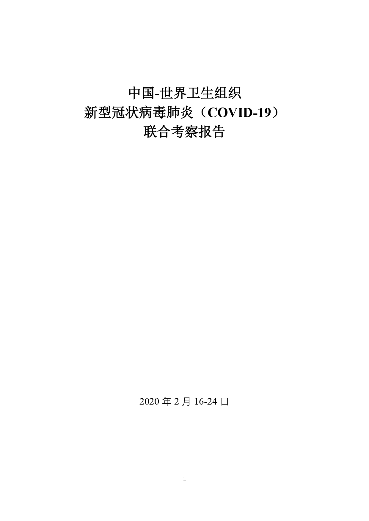 官方发布《中国-世界卫生组织新型冠状病毒肺炎(COVID-19)联合考察报告》