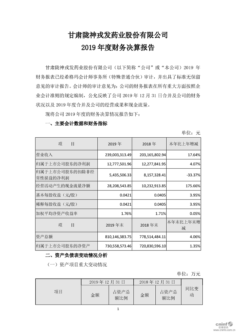 2019年度财务决算报告