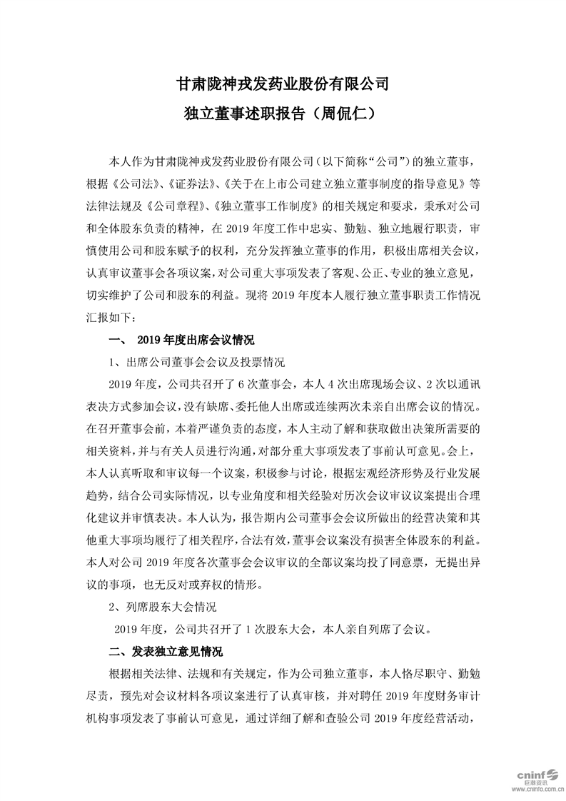 独立董事述职报告(周侃仁)