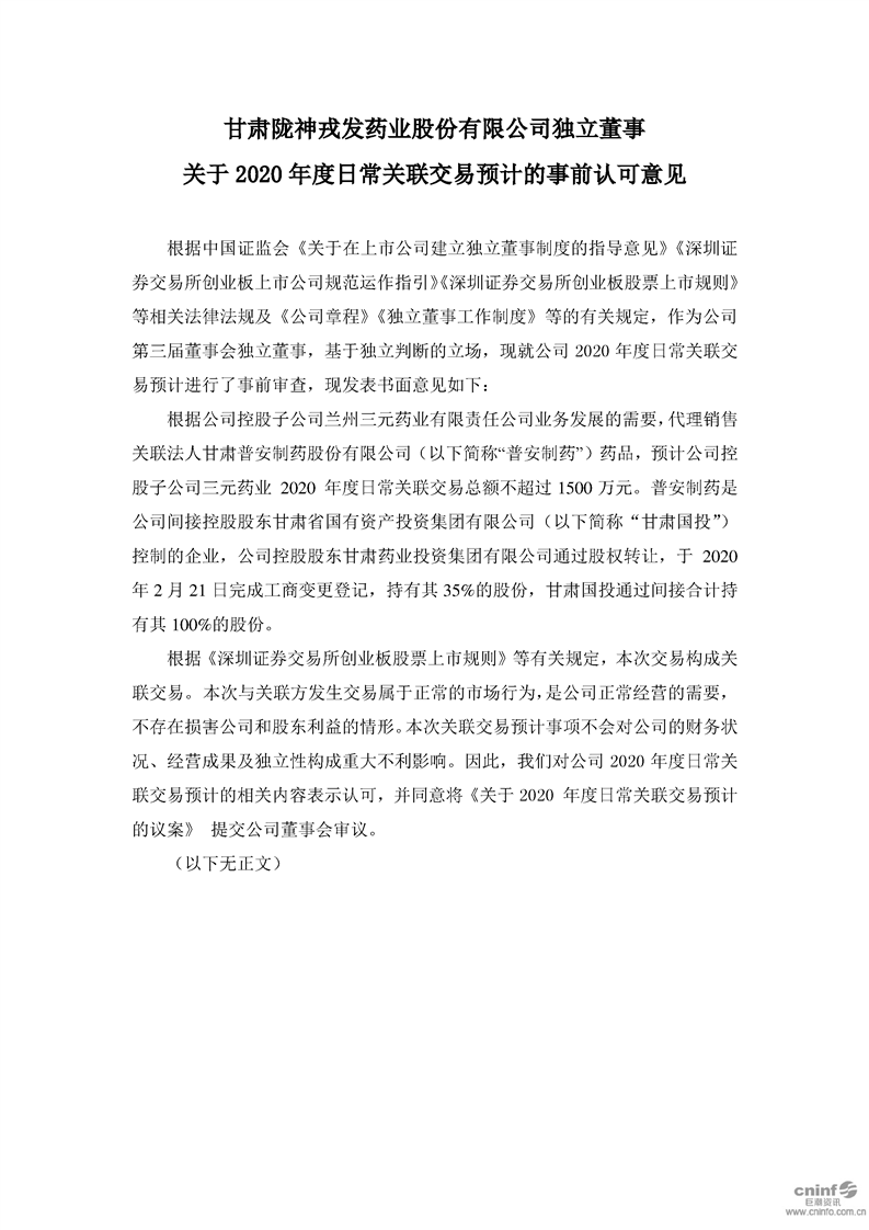 独立董事关于2020年度日常关联交易预计的事前认可意见