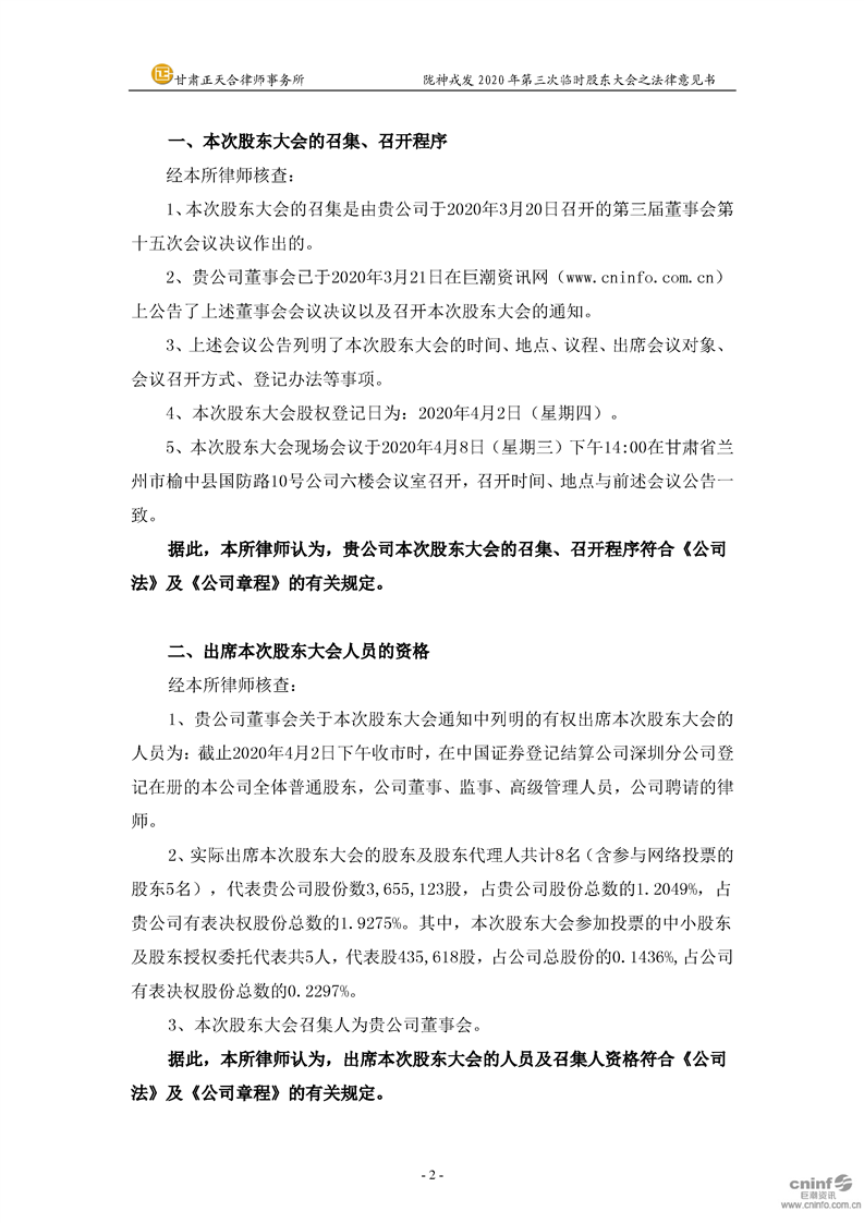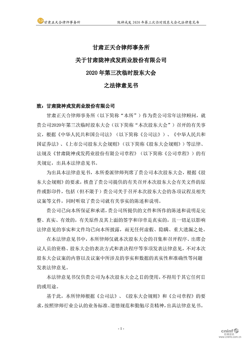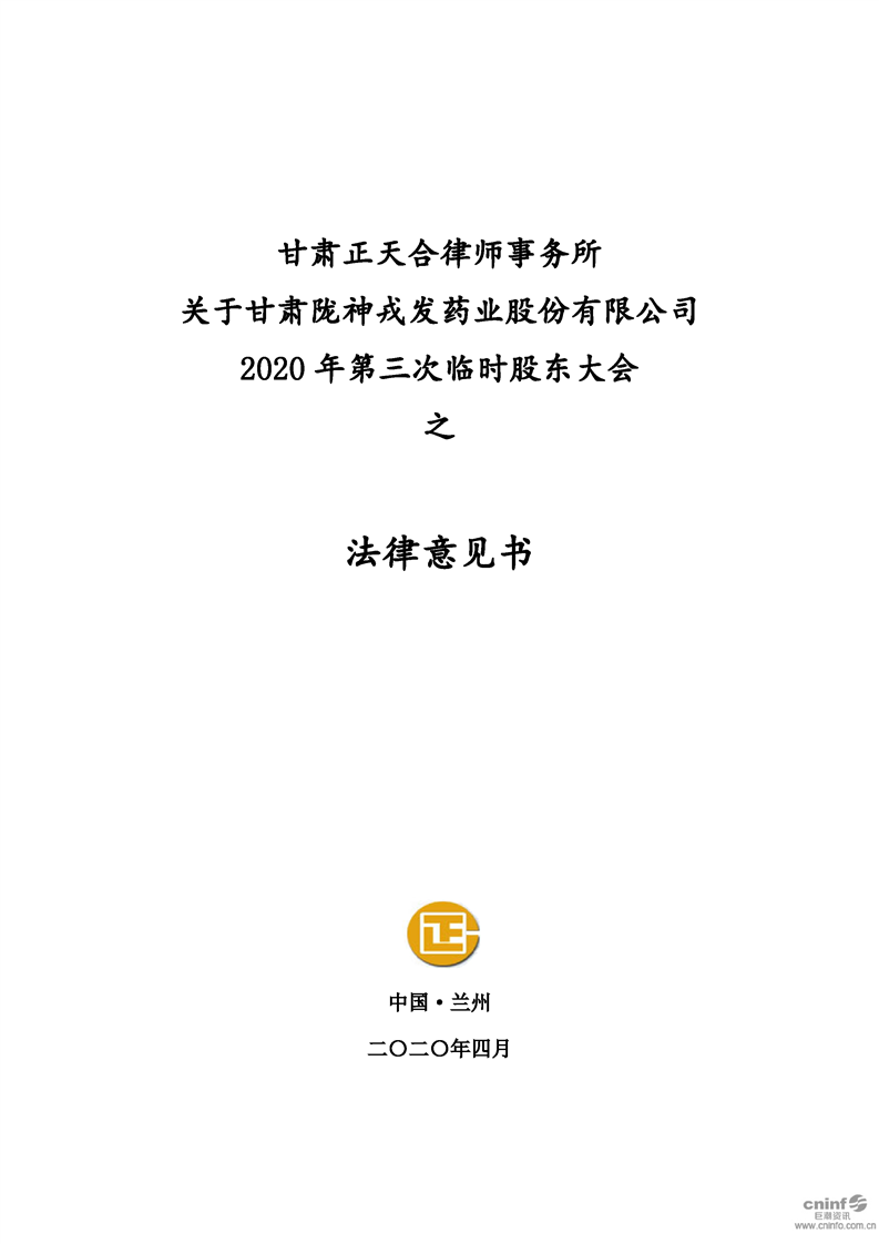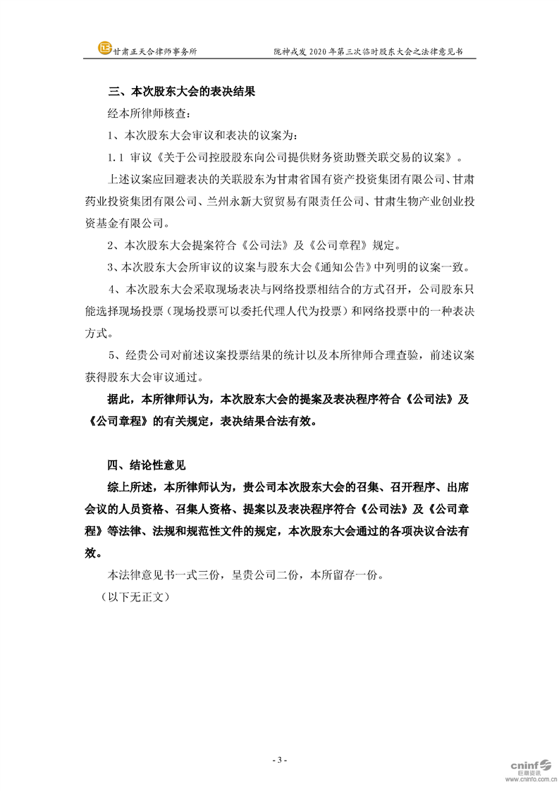 2020年第三次临时股东大会之法律意见书