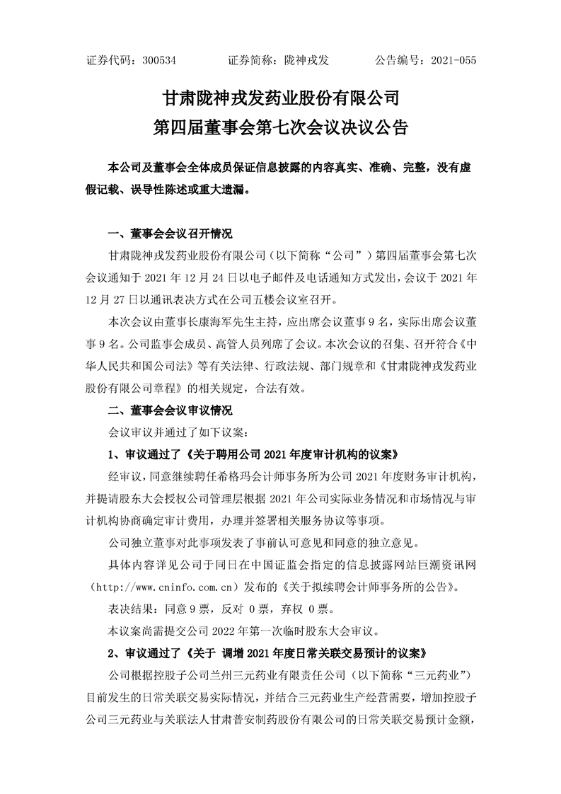 第四届董事会第七次会议决议公告