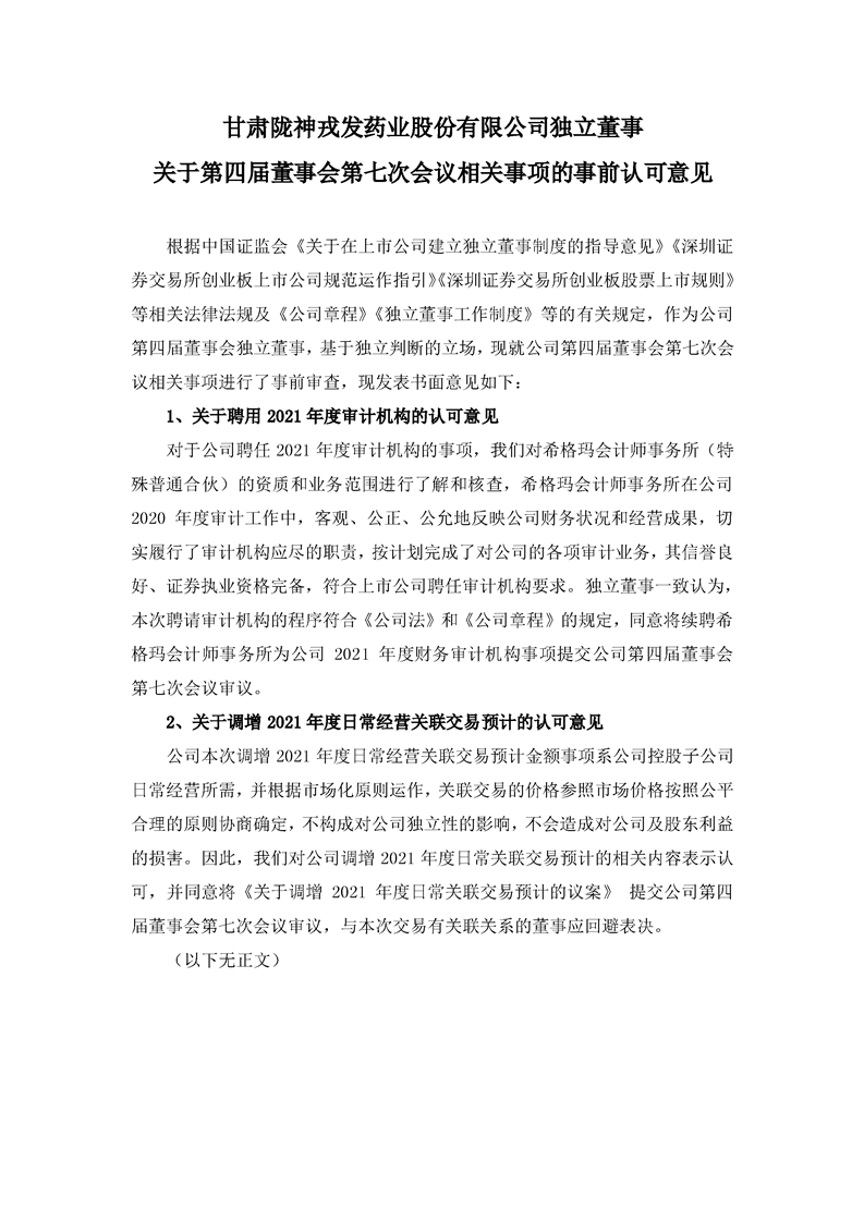 独立董事关于第四届董事会第七次会议相关事项的事前认可意见