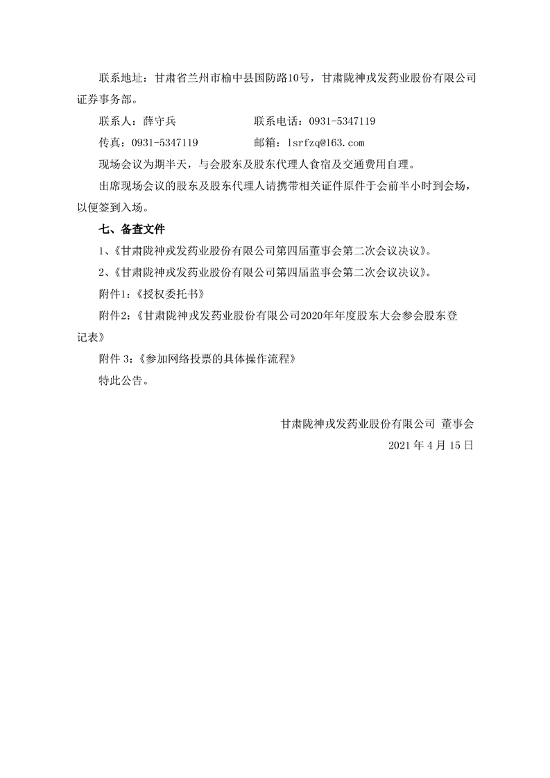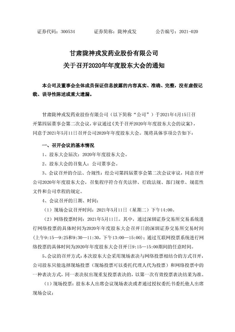 关于召开2020年年度股东大会的通知