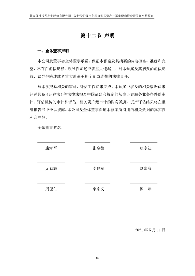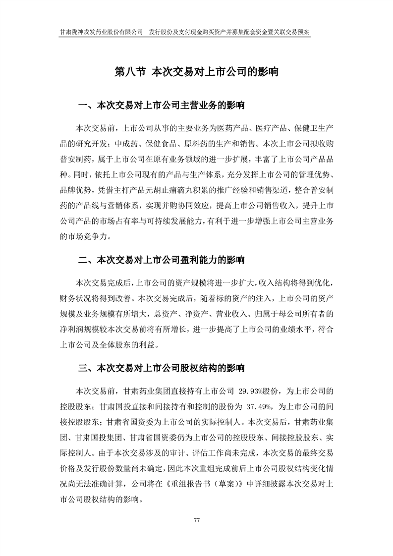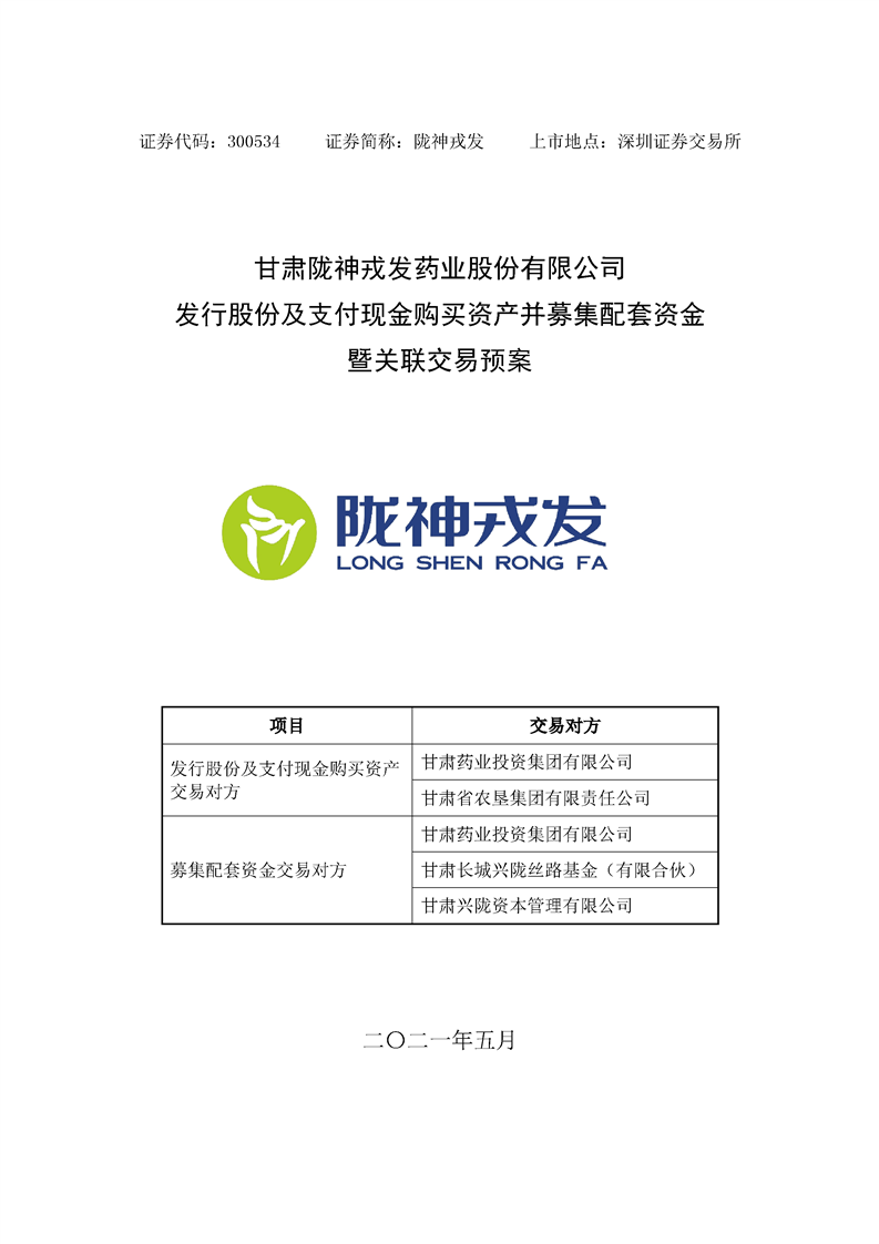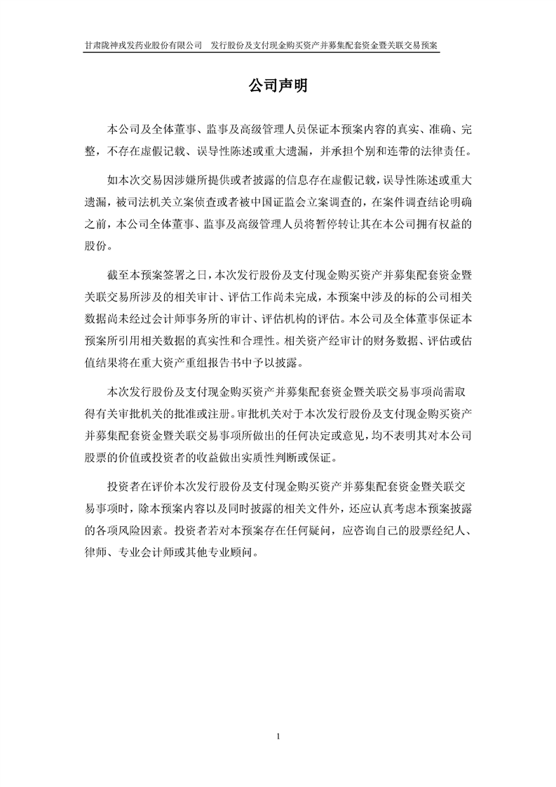 甘肃非凡娱乐药业股份有限公司发行股份及支付现金购买资产并募集配套资金暨关联交易预案
