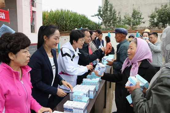 在捐赠仪式上,公司党委委员杨俊萍代表公司做了企业及产品介绍并现场发放药品。公司控股子公司三元药业副总经理付树红向群众详细的讲解了产品主治功能和服用剂量。