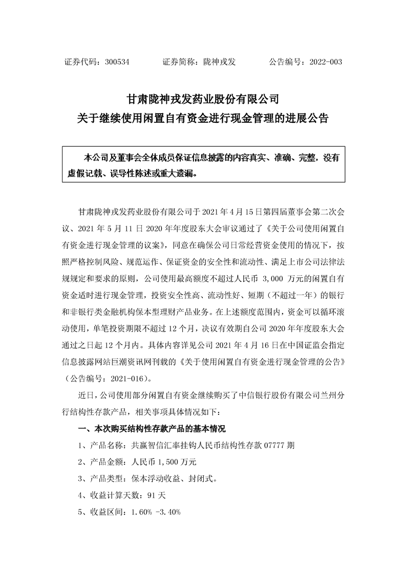 关于继续使用闲置自有资金进行现金管理的进展公告