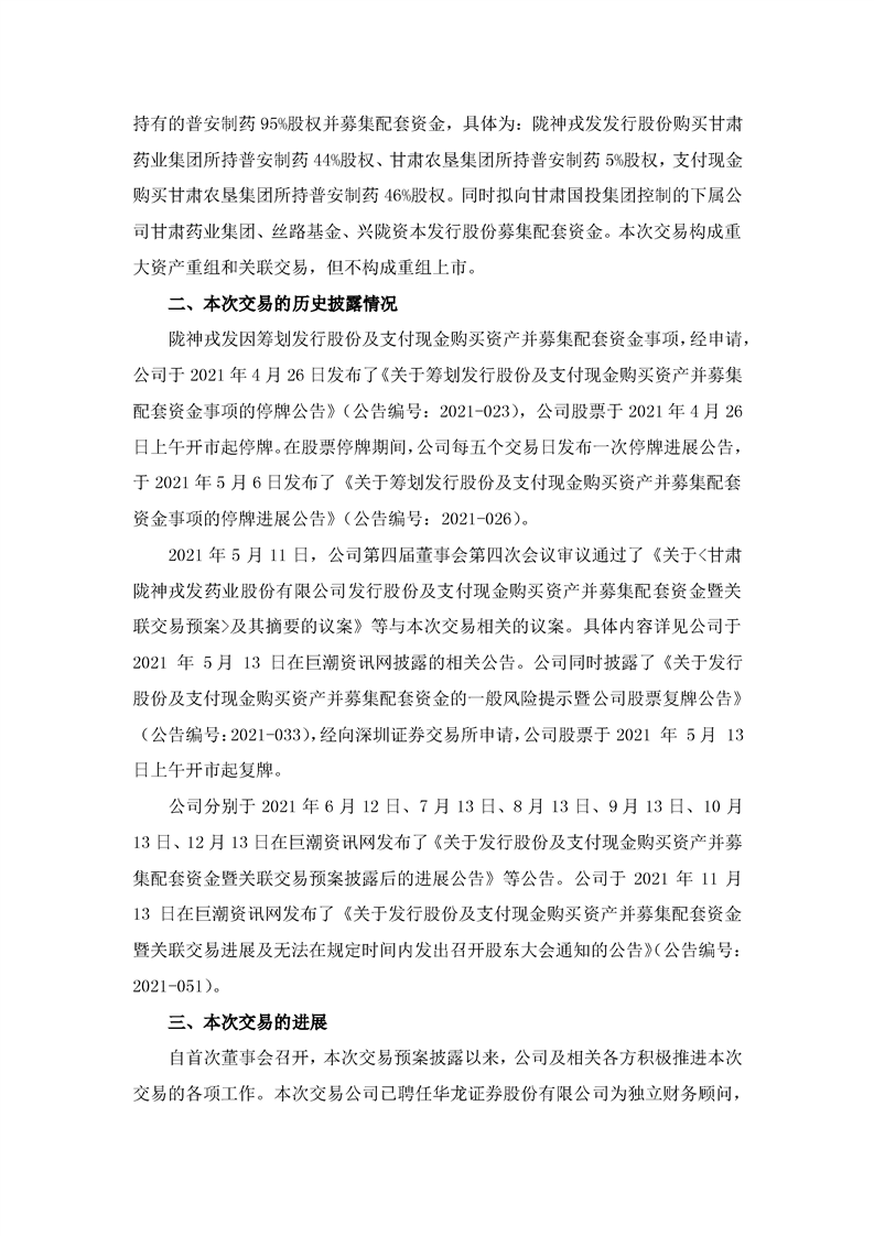 关于发行股份及支付现金购买资产并募集配套资金暨关联交易预案披露后的进展公告