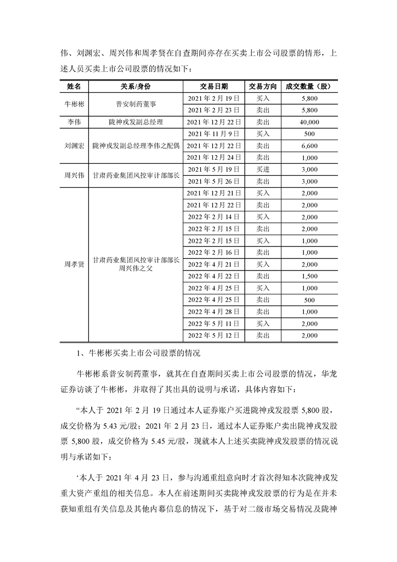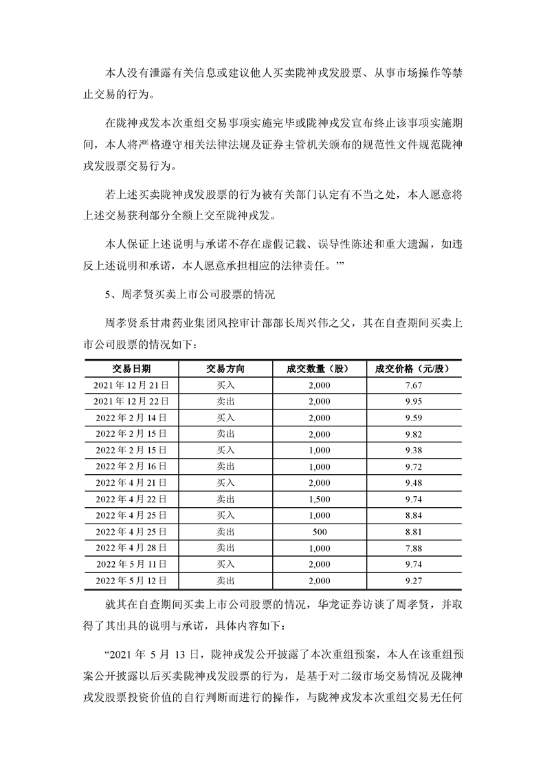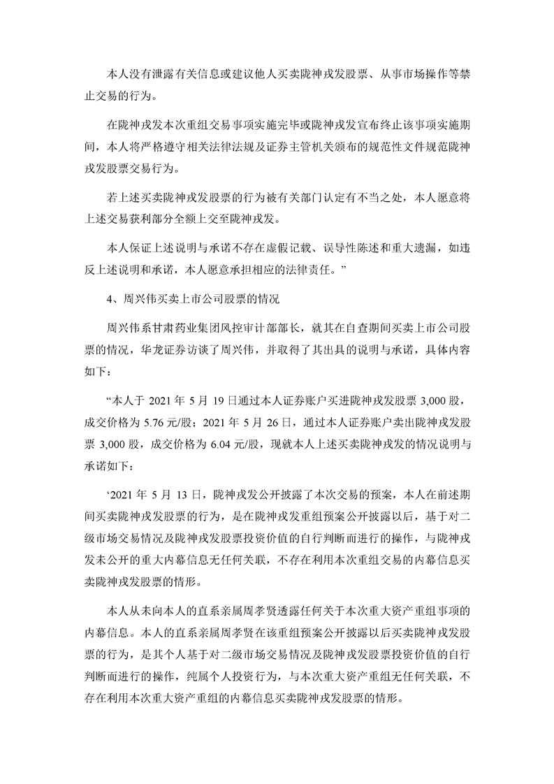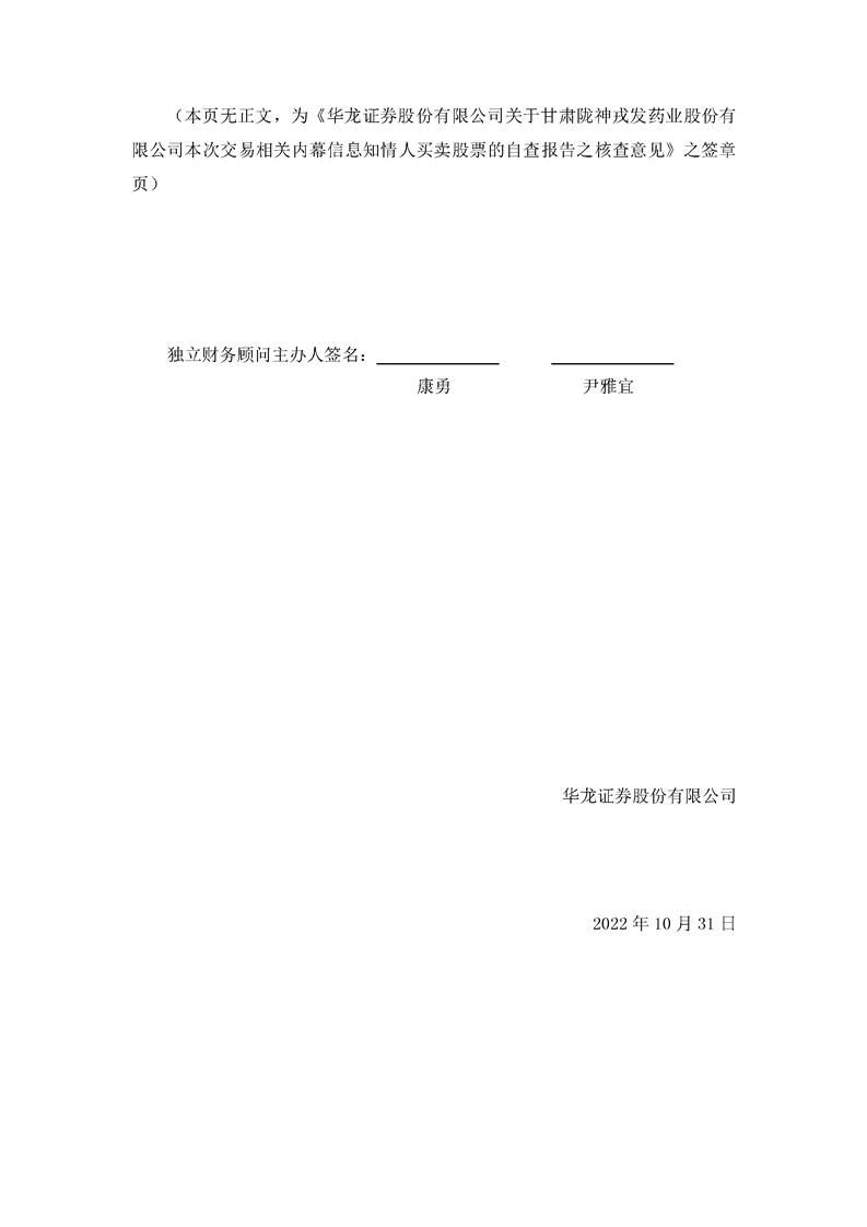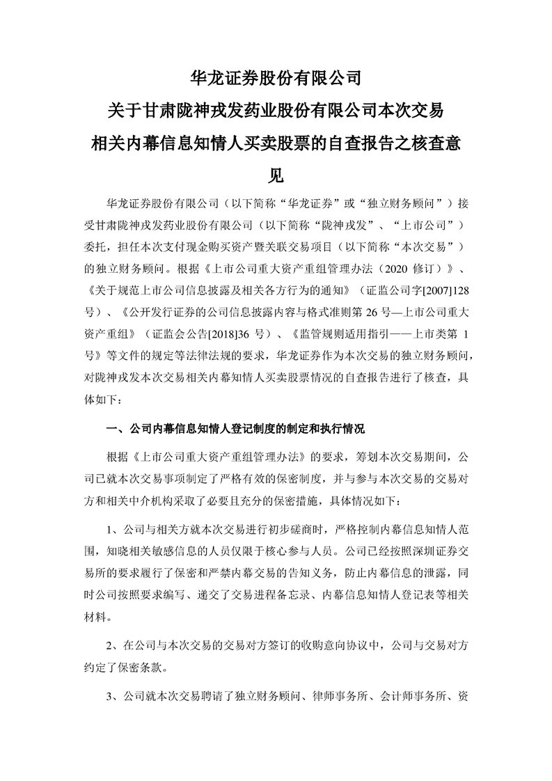 华龙证券股份有限公司关于甘肃非凡娱乐药业股份有限公司本次交易相关内幕信息知情人买卖股票的自查报告之核查意见