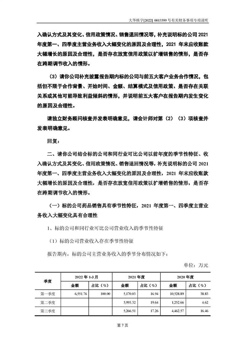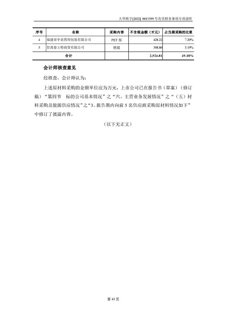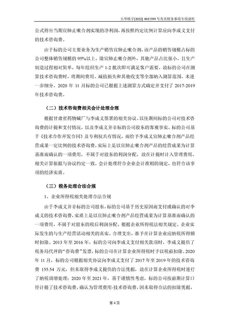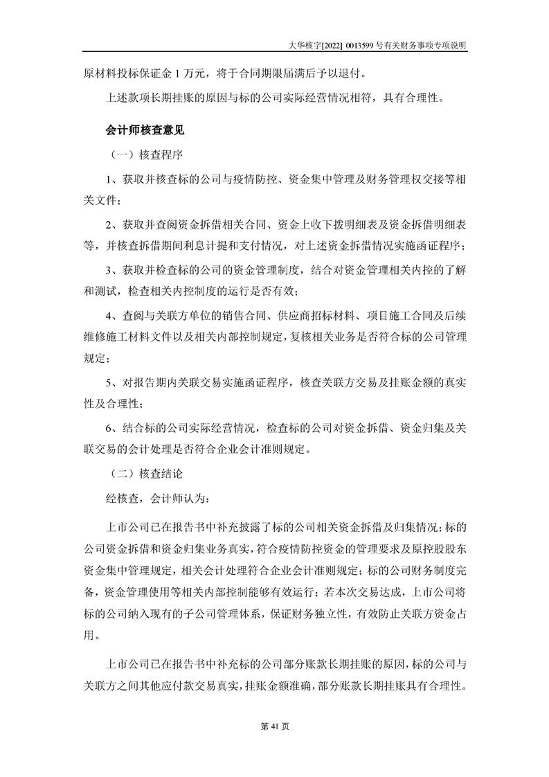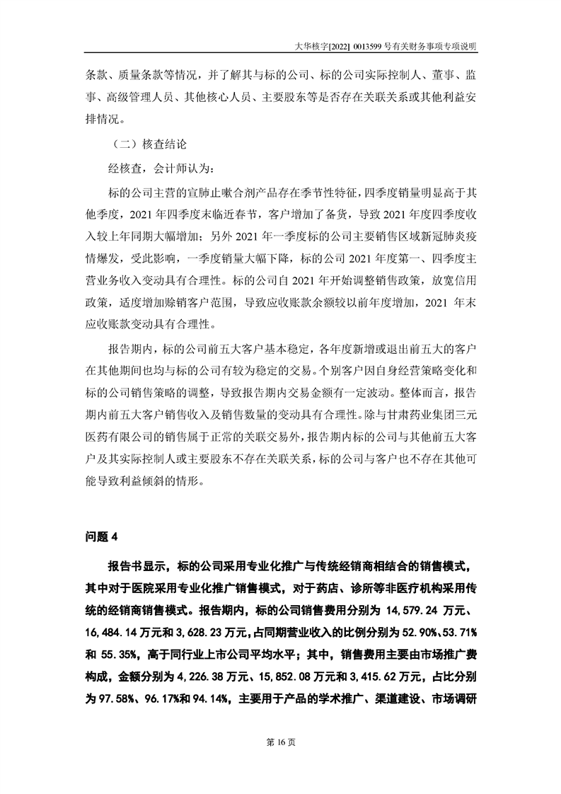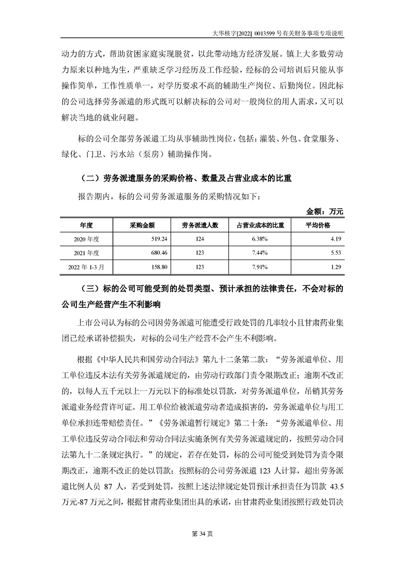 关于深圳证券交易所对甘肃非凡娱乐药业股份有限公司的重组问询函中有关财务事项的专项说明大华核字[2022]0013599号