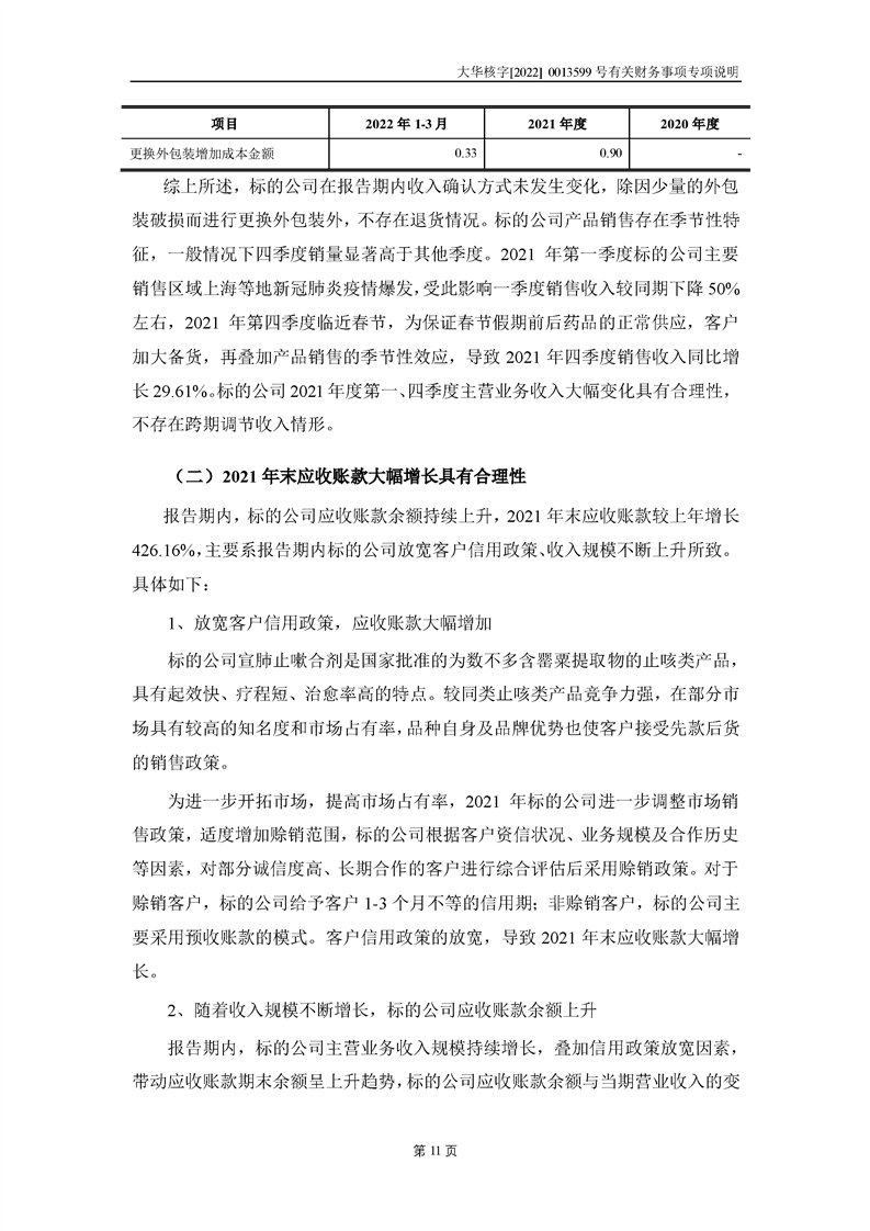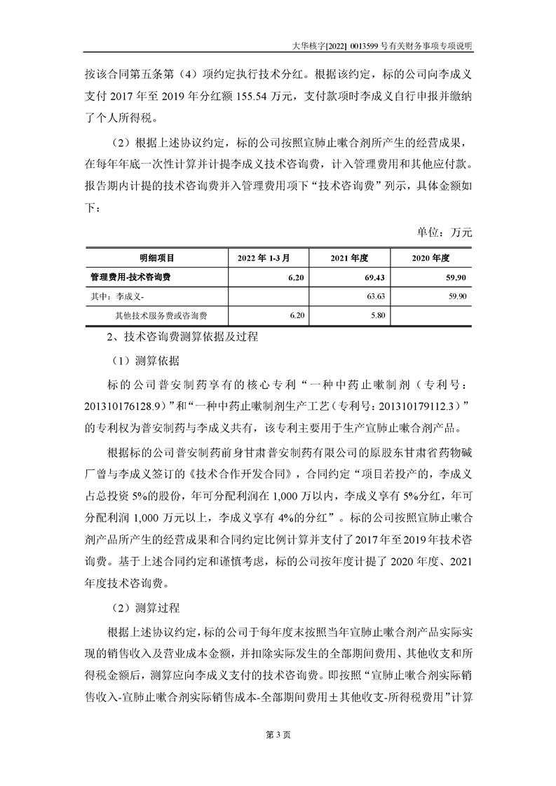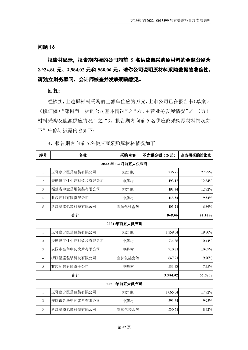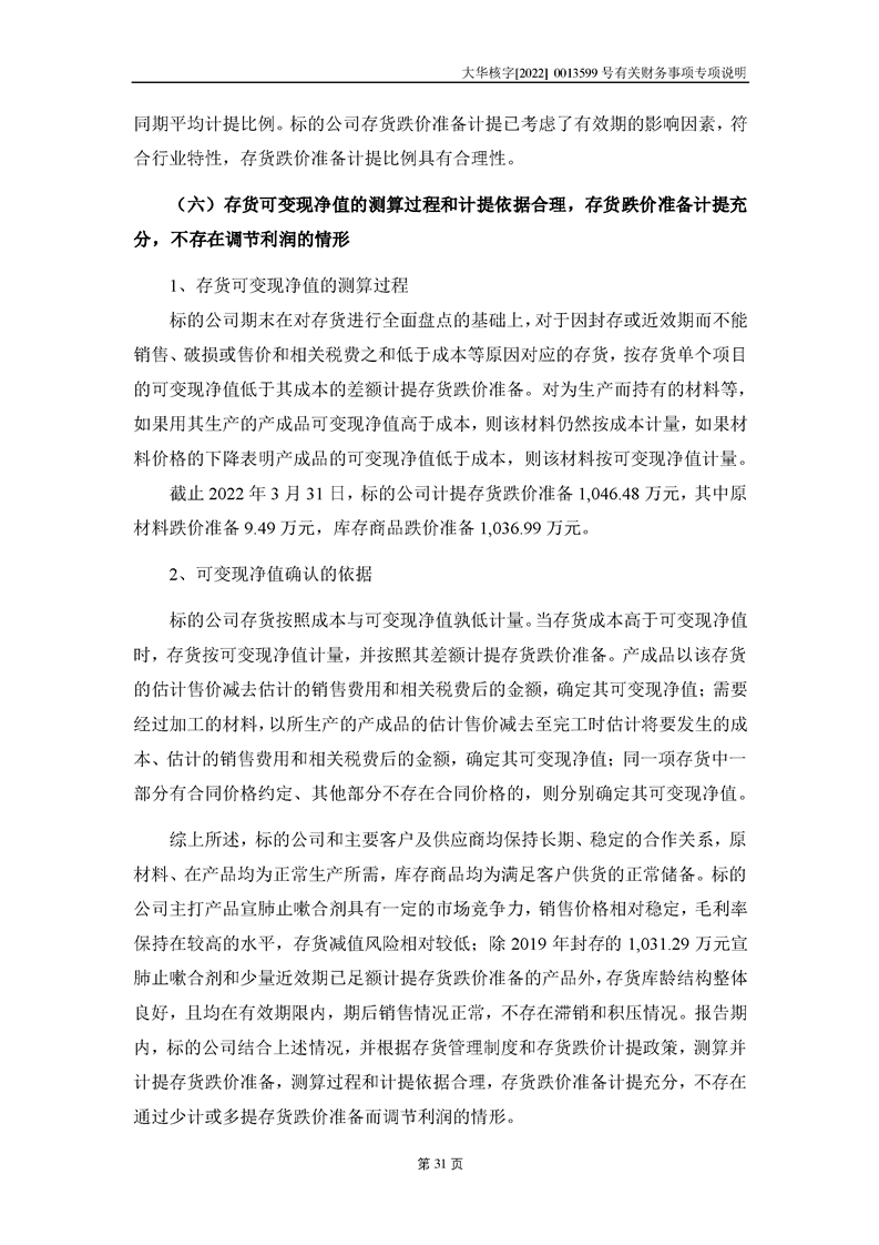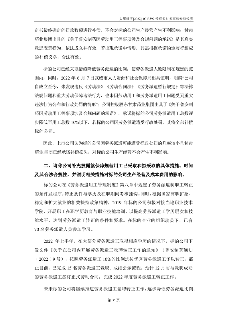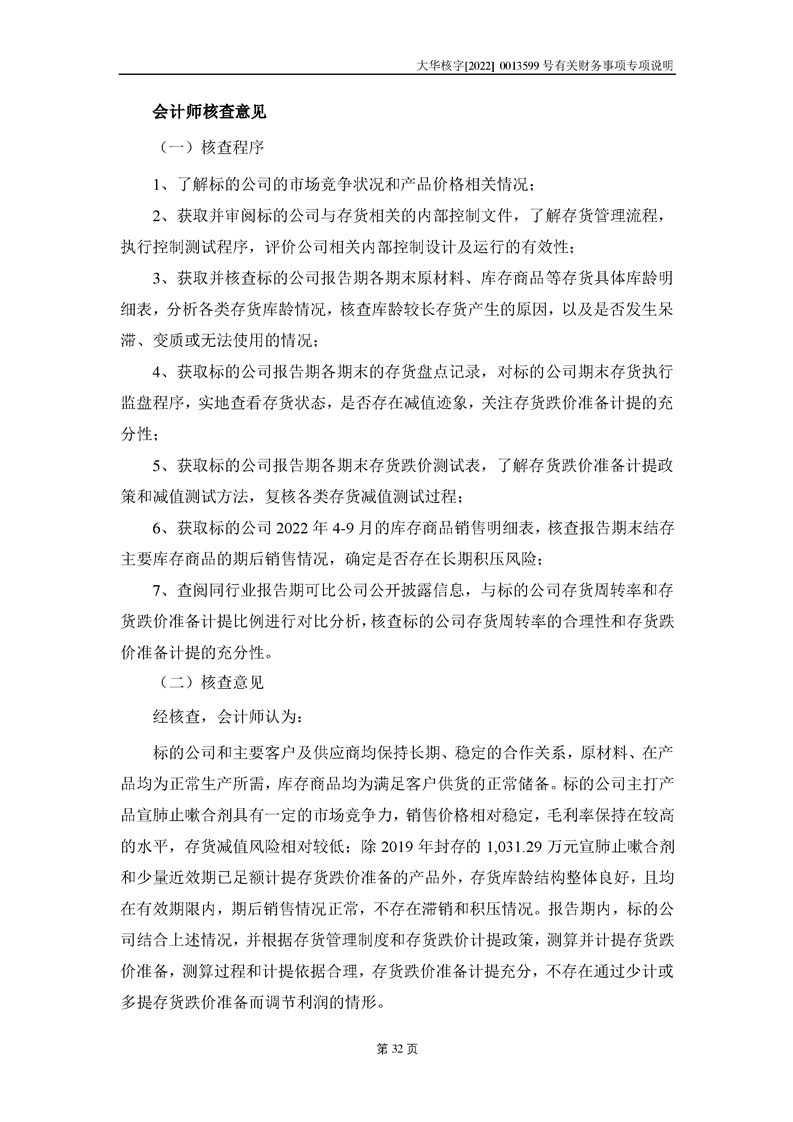 关于深圳证券交易所对甘肃非凡娱乐药业股份有限公司的重组问询函中有关财务事项的专项说明大华核字[2022]0013599号