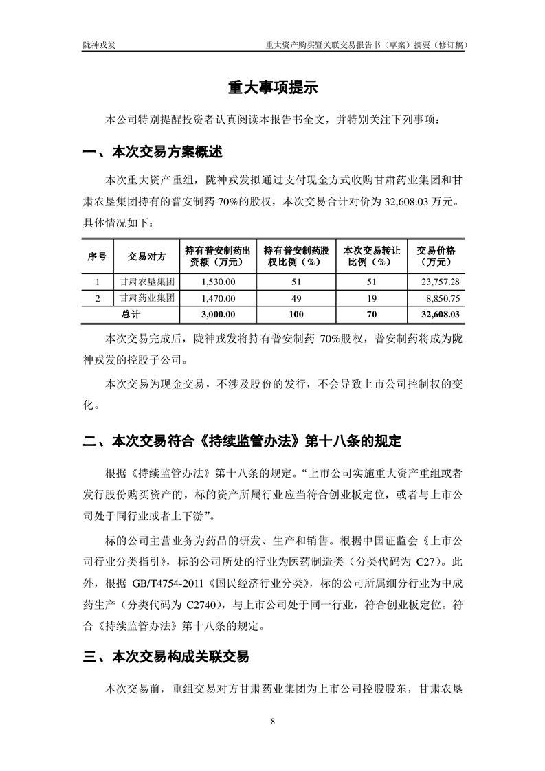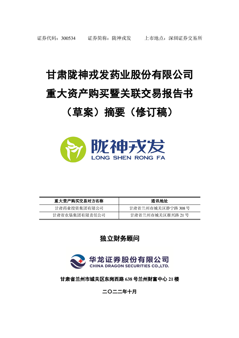 甘肃非凡娱乐药业股份有限公司重大资产购买暨关联交易报告书(草案)摘要(修订稿)