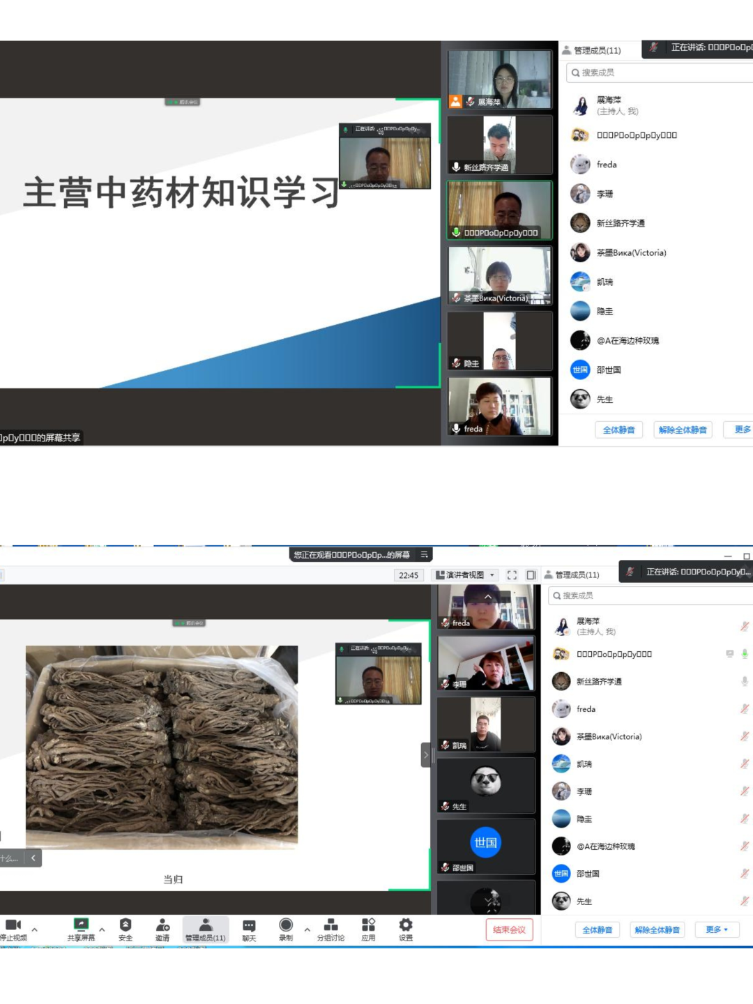 同时,公司本周连续五天安排了“走进新丝路”、“产品境外注册业务之俄罗斯注册篇”、“公司主要经营中药材知识学习”、“财务制度和报销流程培训”等学习培训和“成本分析”业务对接会,利用本次机会向新老员工进行了系统地介绍和讲解新丝路的发展历程、业务操作流程、如何提升团队凝聚力及未来发展规划等内容。此外,公司还统筹协调,积极参加了集团公司和母公司组织的各项培训,切实做到了居家封控期间学习、工作两不误,培训、业务两手抓,持续激发员工干事创业热情。