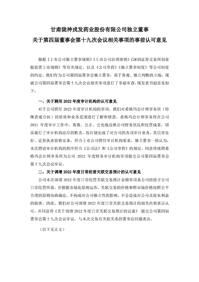 独立董事关于第四届董事会第十九次会议相关事项的事前认可意见