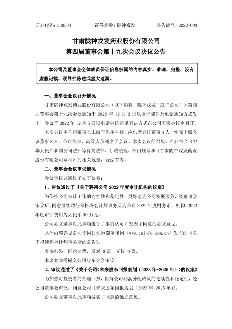 第四届董事会第十九次会议决议公告