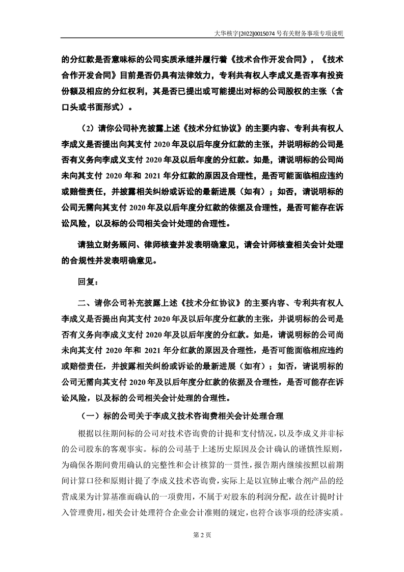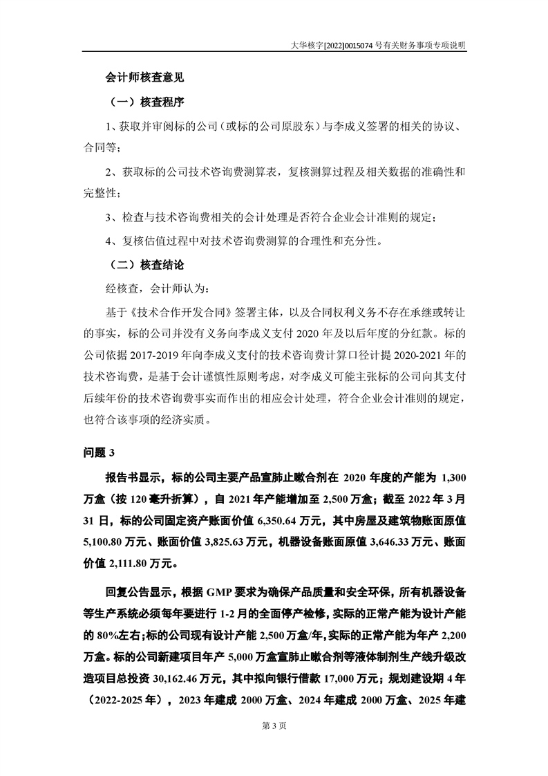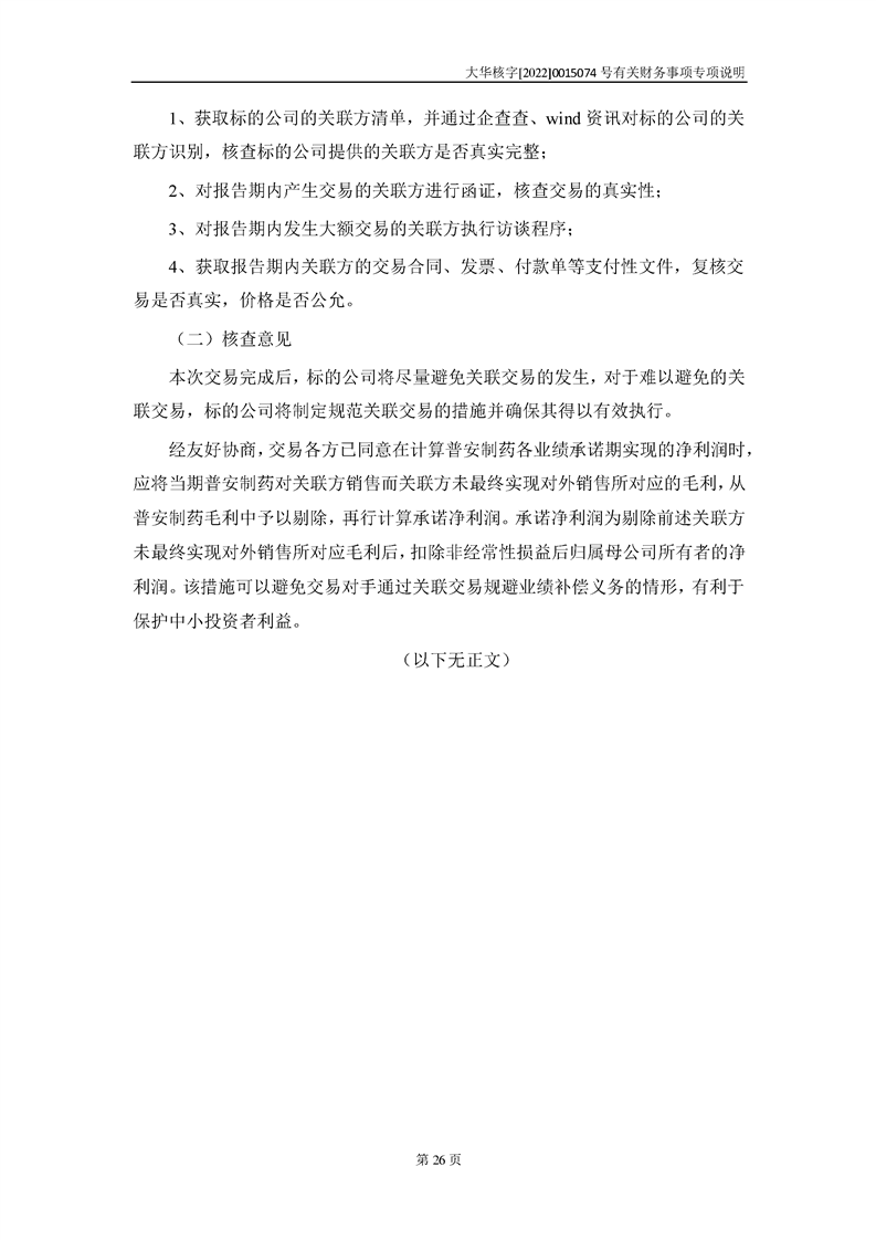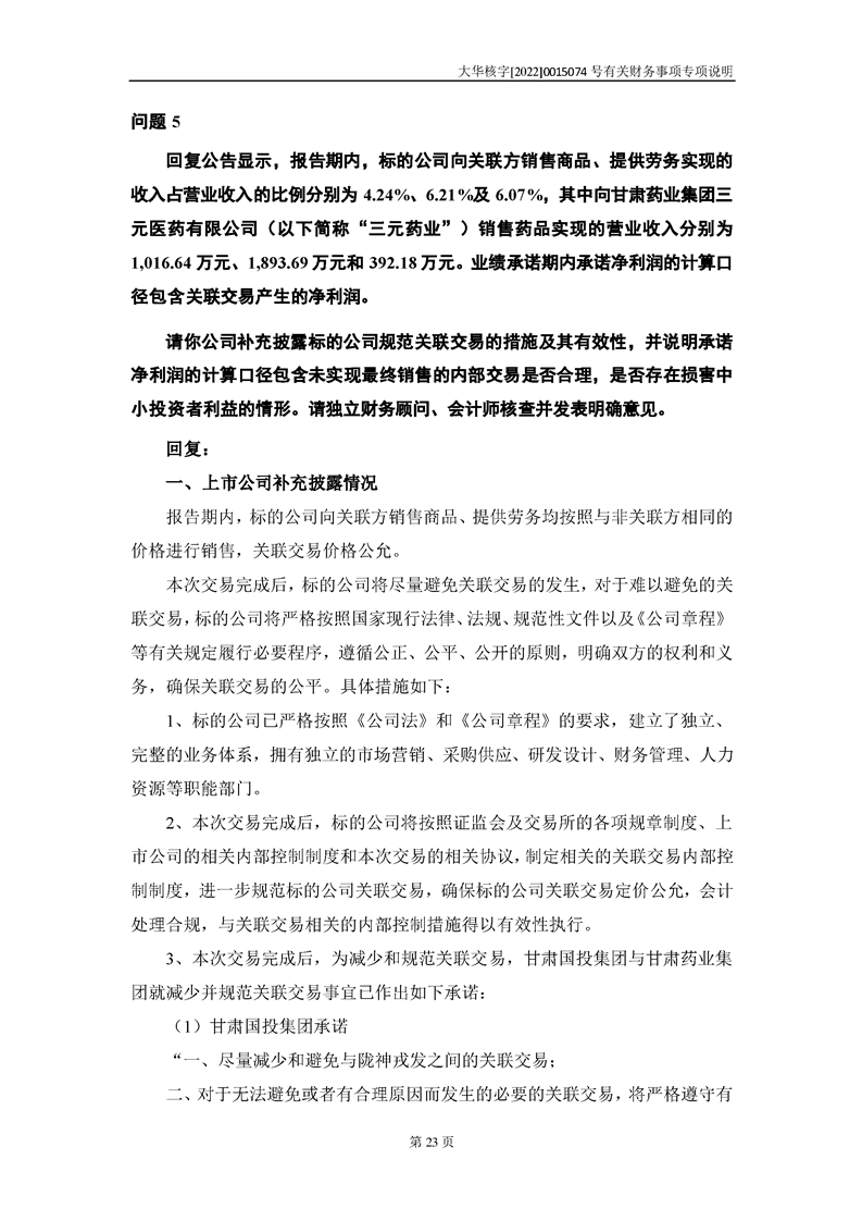 关于深圳证券交易所对甘肃非凡娱乐药业股份有限公司的重组问询函中有关财务事项的专项说明-大华核字[2022]0015074号
