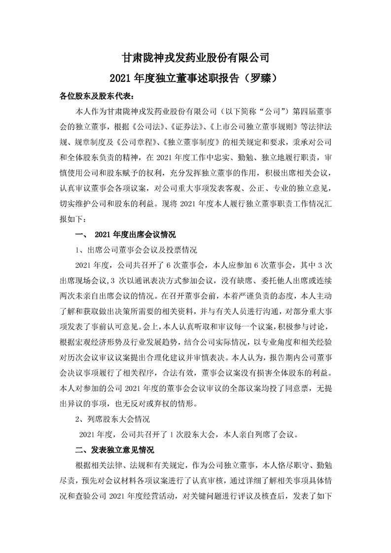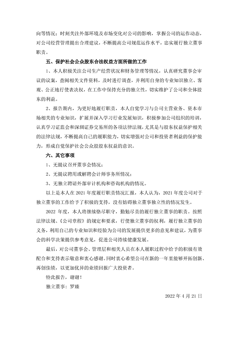 2021年独立董事述职报告(罗臻)