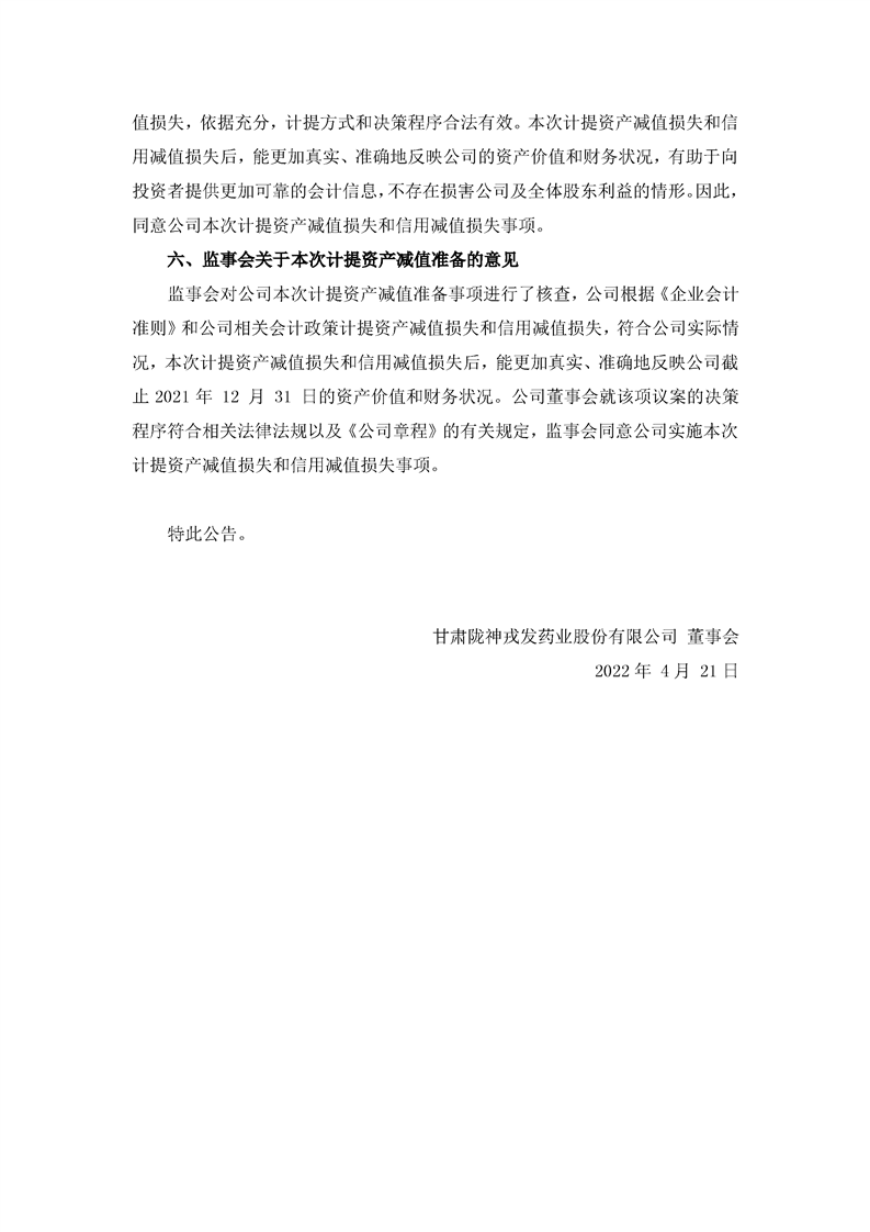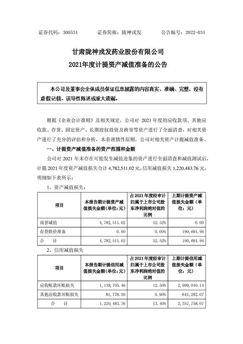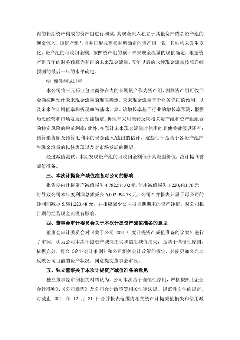 关于公司2021年度计提资产减值准备的公告