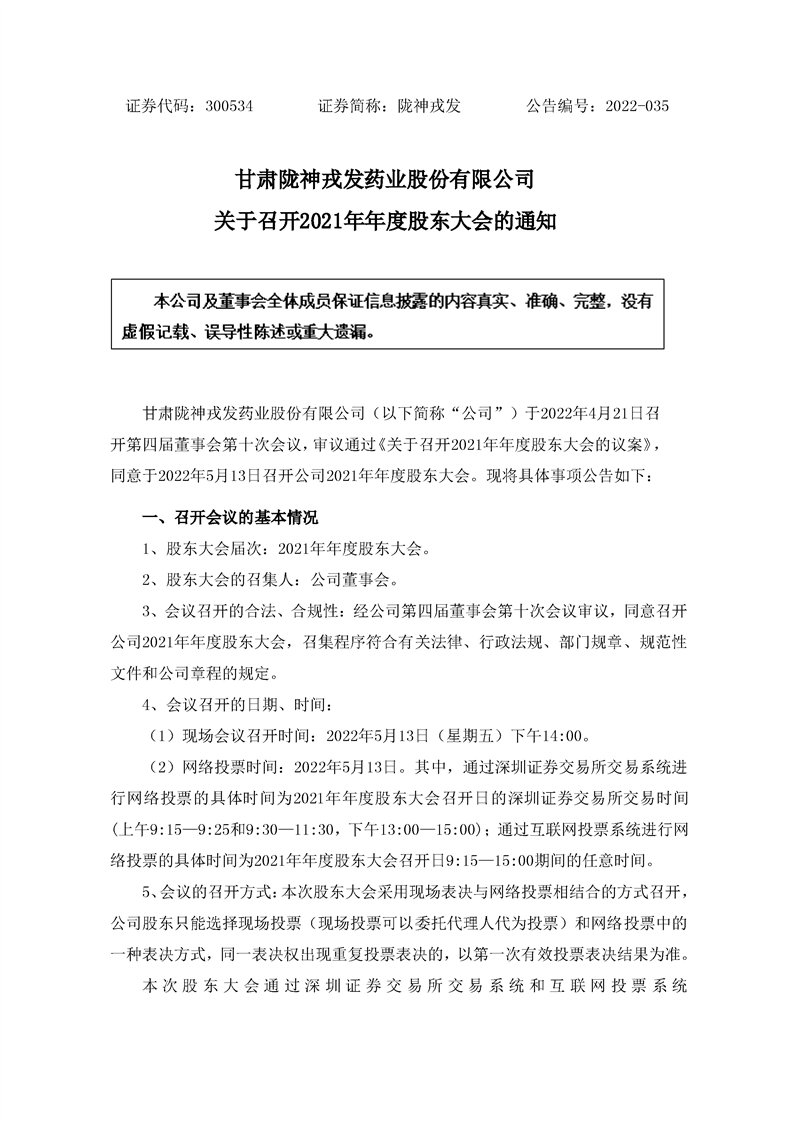 关于召开2021年年度股东大会的通知