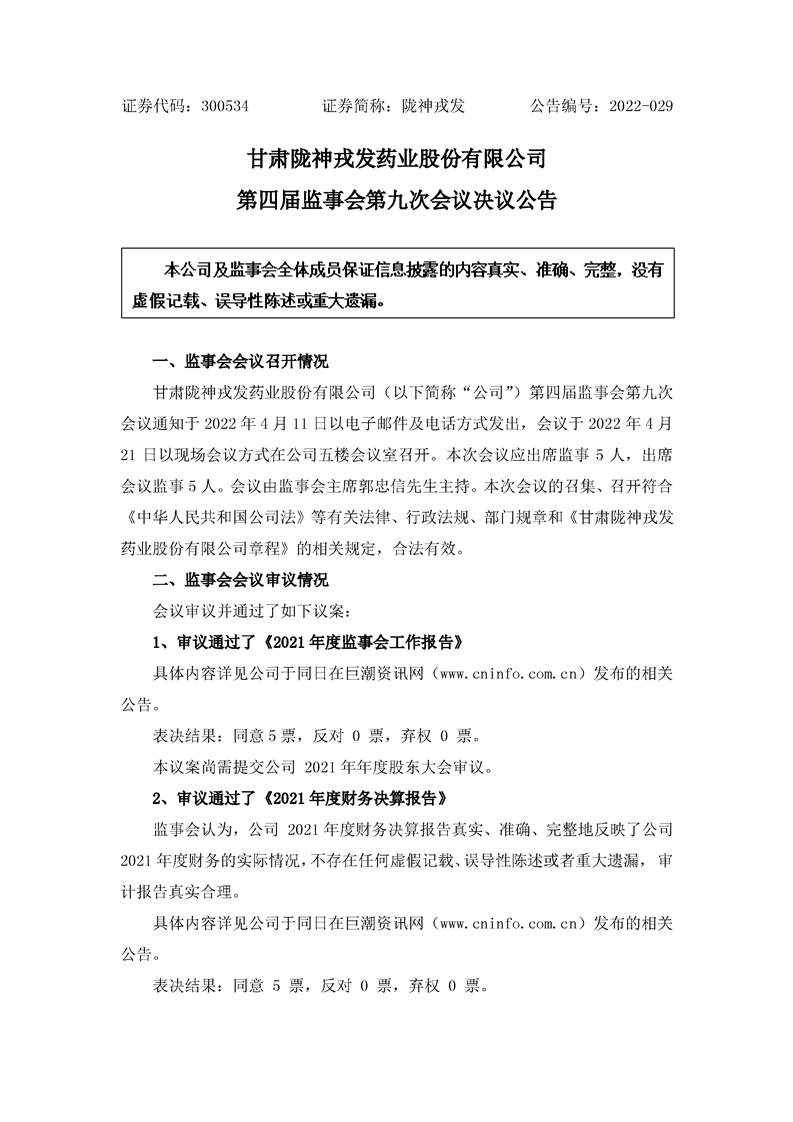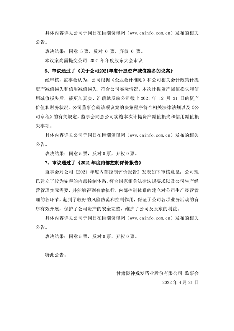 监事会决议公告