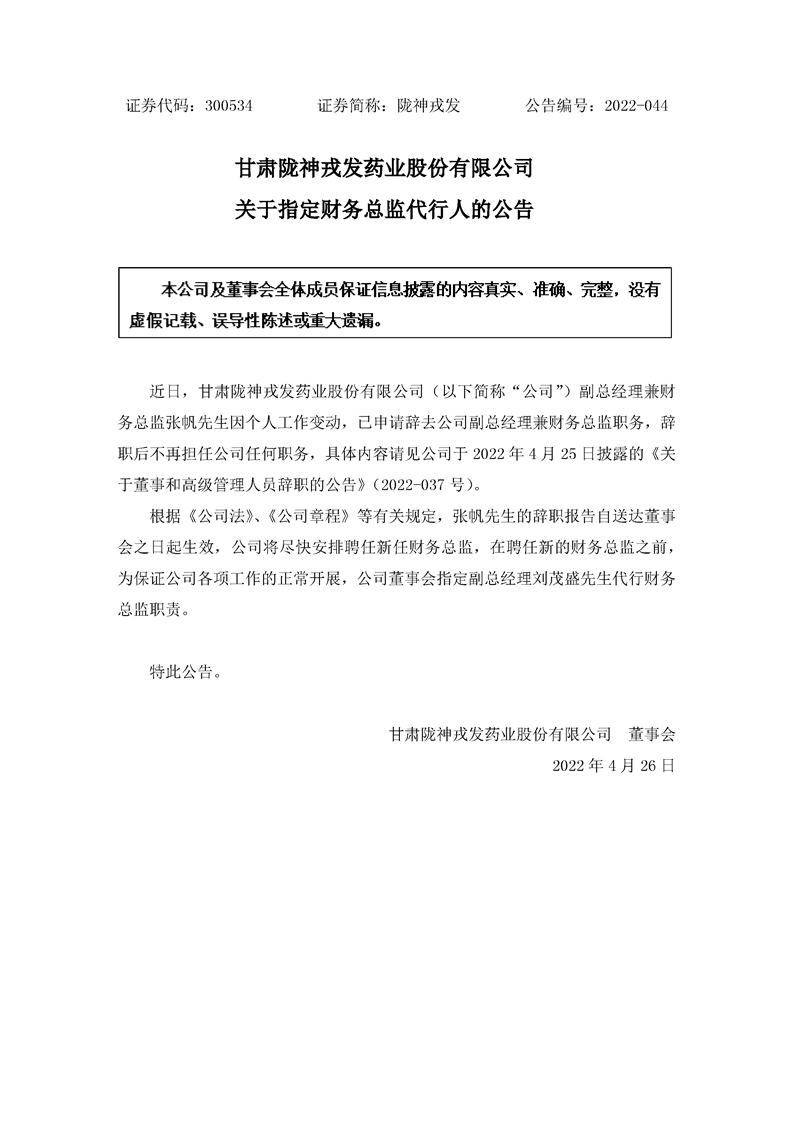 关于指定财务总监代行人的公告