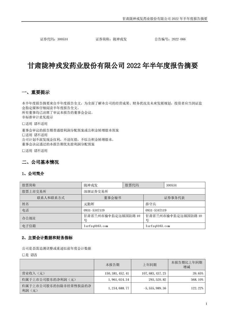 2022年半年度报告摘要